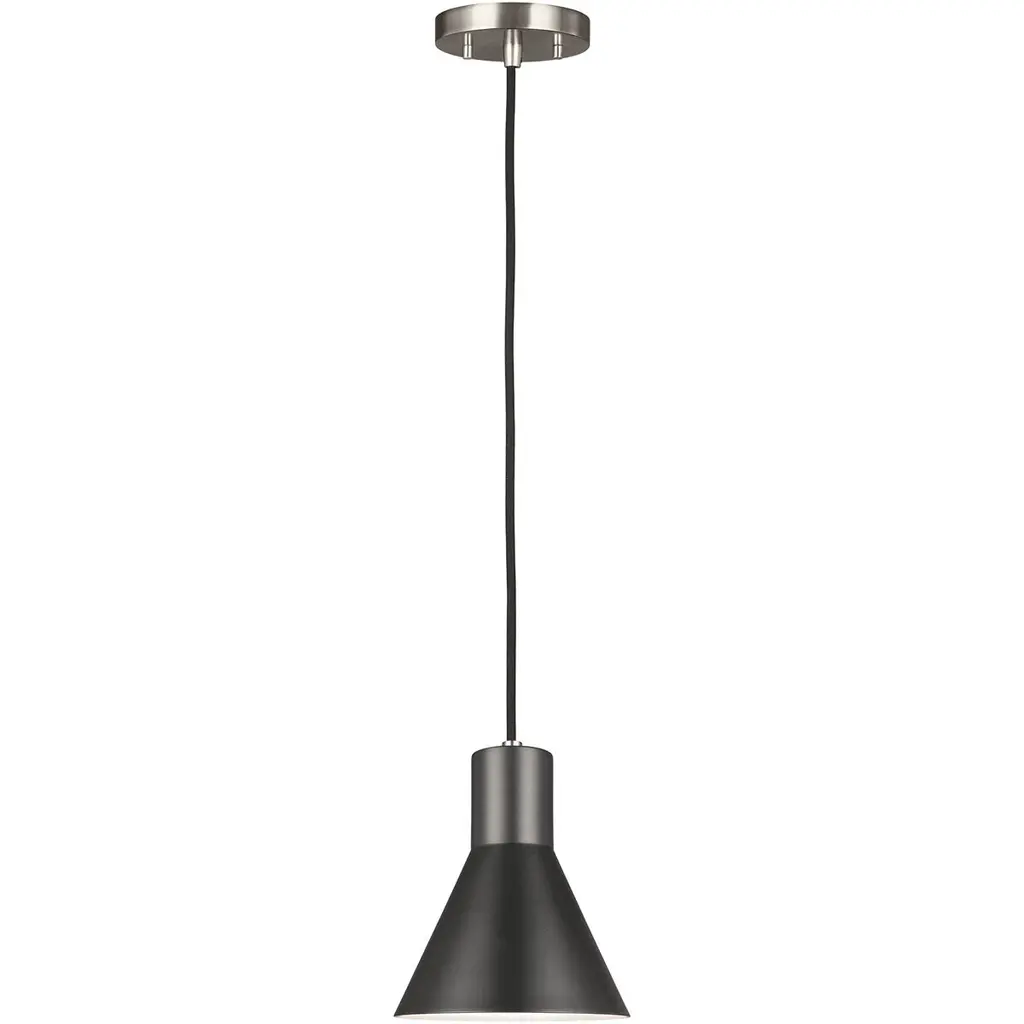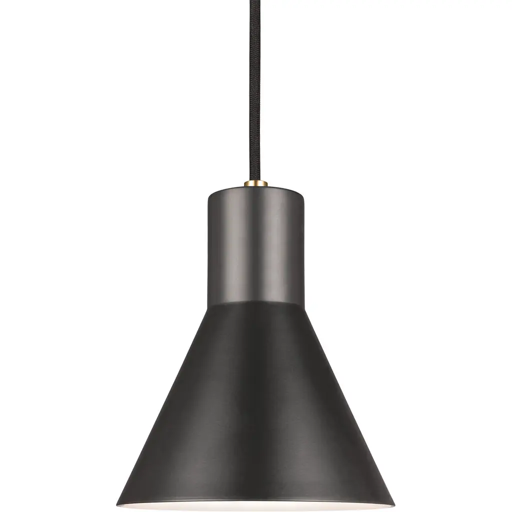 The Towner one light mini pendant in satin brass enhances the beauty of your home with ample light and style to match today's trends. The Towner lighting collection by brings mid-century, retro style to the traditional circular silhouette, creating a bold statement that would accent any space in your home. The conical light shades deliver a fun design statement along with the textured cloth cords, which are adjustable for leveling. These fixtures are ideal for dining room lighting, living room lighting and kitchen lighting. The assortment includes three-, five- and seven-light chandeliers, three- and five-light cluster pendants, eight-light island pendants, one-light mini pendants, and one-light wall sconces. The Towner Collection is available in two finishes, Satin Bronze and Brushed Nickel to complete the look. All fixtures are available as ENERGY STAR?½-qualified and California Title 24 compliant.