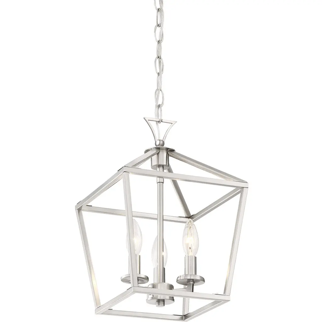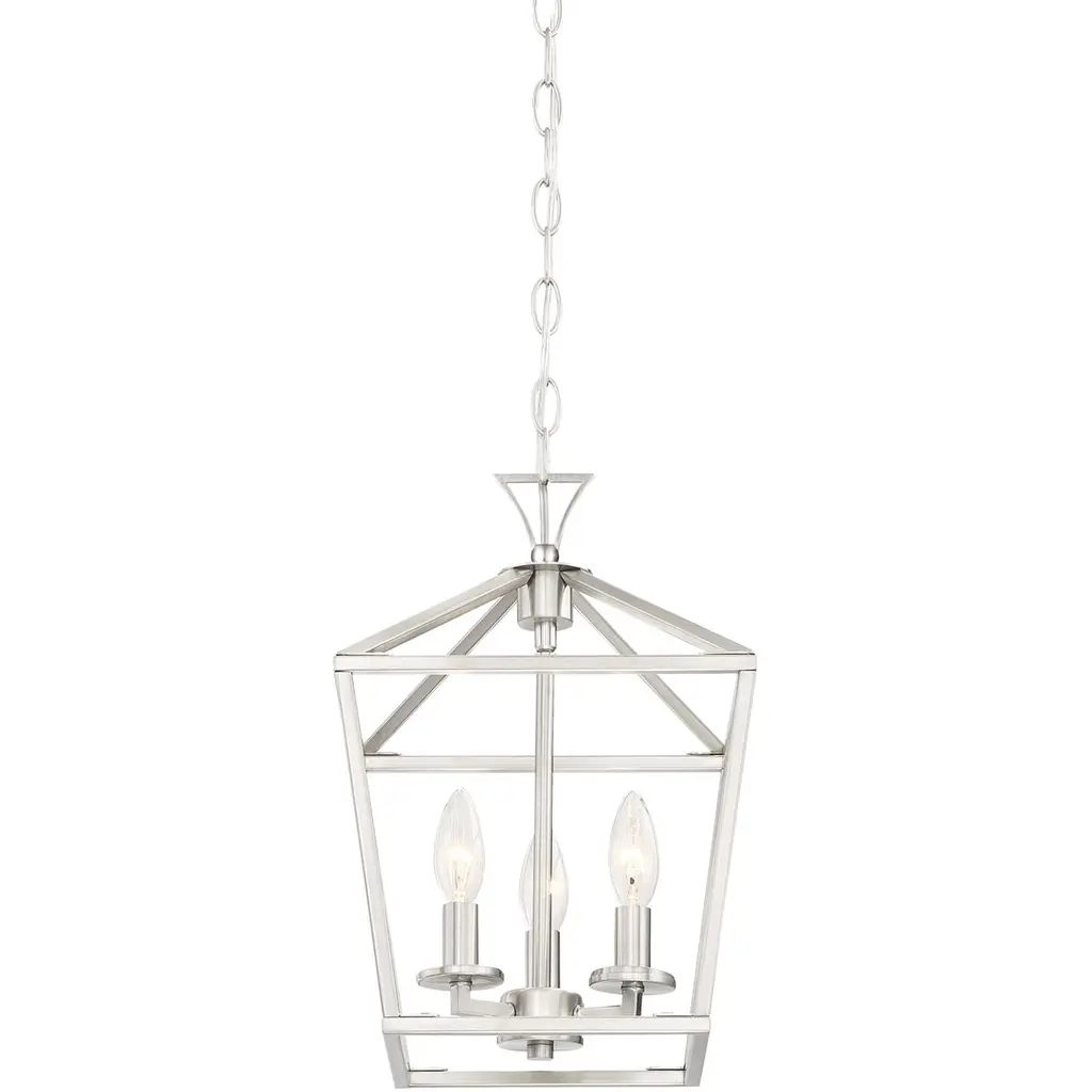 The Savoy House Townsend 3-light pendant offers up a casual open lantern look that is the perfect addition for any space inside the home. Satin nickel finish. Pendants are very versatile and can be used in many different indoor spaces, including kitchens, foyers, offices, great rooms, bedrooms and even bathrooms. Bulbs not included. Try using stylized bulbs for a different look The satin nickel finish can be matched with nickel hardware or mixed with hardware in other finishes. Townsend is a great option for adding a bold touch to rooms in transitional, farmhouse or classic style. When you choose a Savoy House lighting fixture, you can be certain you've selected a piece that will withstand the test of time.