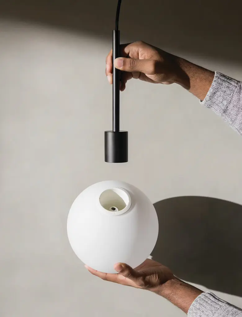 TR Bulb is a clever solution for modern city living, inspired by the way people are increasingly becoming urban nomads, moving between cities and countries to pursue careers and life experiences. The first collaboration between MENU and Tim Rundle, TR Bulb is designed to be taken from apartment to apartment - installed by simply screwing it into the pendant sockets hanging in ceilings all over the world, no electrical expertise required. The dimmable LED bulb, with its elegant, spherical form hides the lamp fitting, while the opal glass diffuser creates an even, harmonious glow, preventing glare.