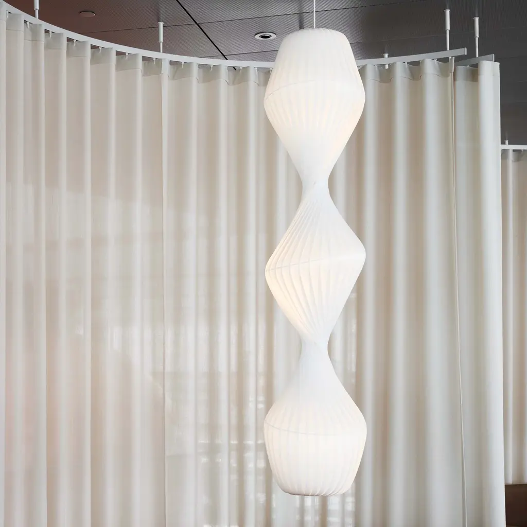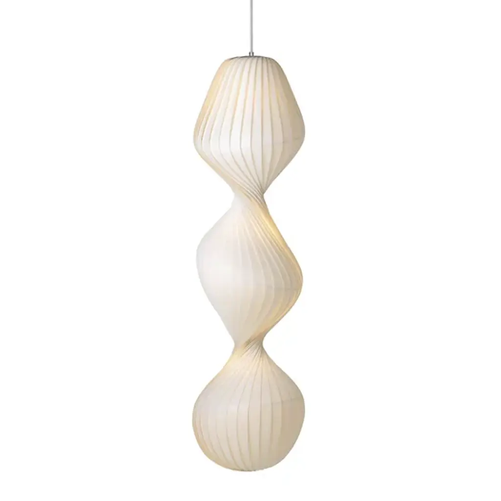The TR32/33 LED Pendant Light from Tom Rossau combines elegant sculptural design with functional illumination. Its large form provides ample, general lighting, while the textured white screen softly diffuses light for a comfortable ambiance. Featuring a playful, asymmetrical shape, this unique pendant adds lasting visual interest and refined sophistication to any space. Highlights