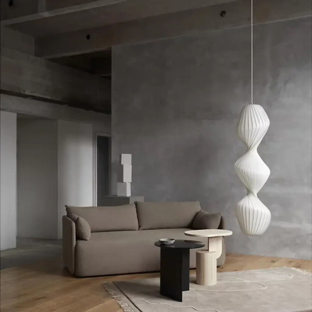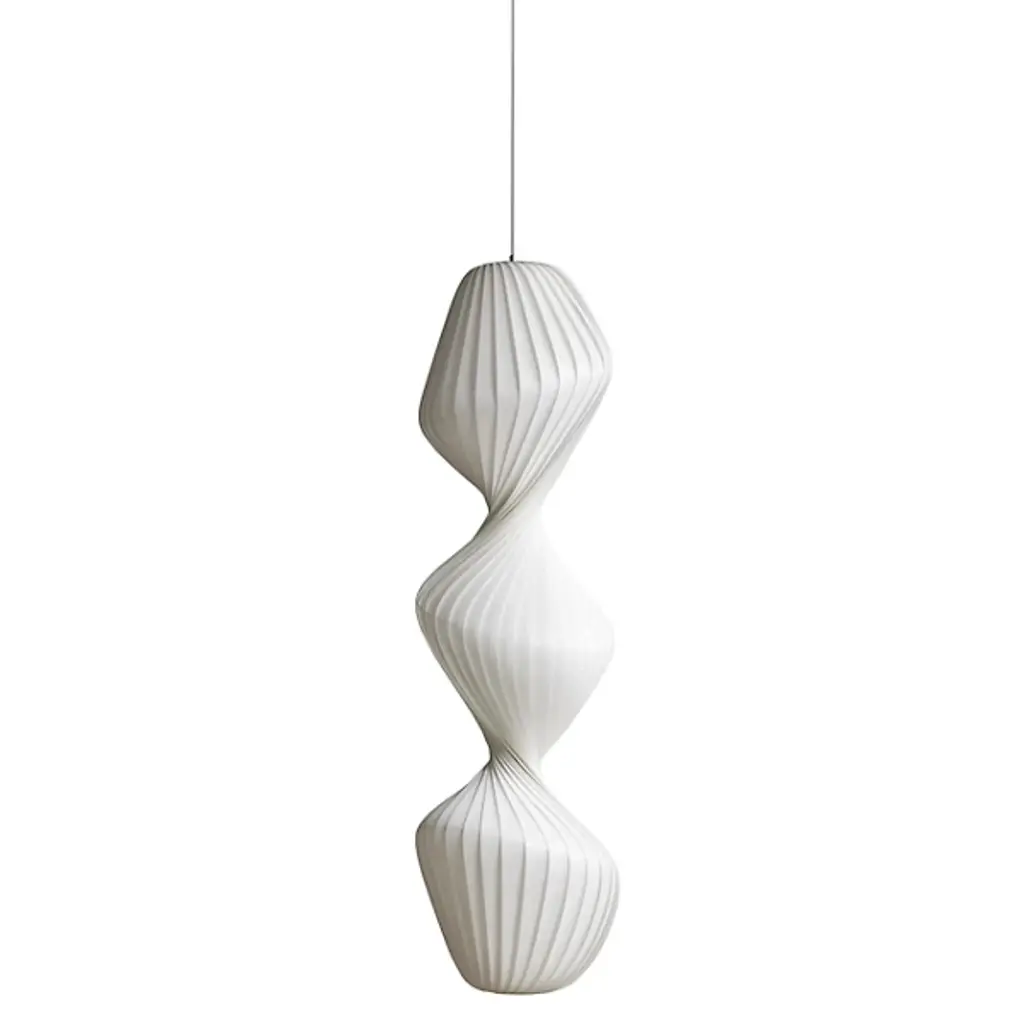 The TR33 Pendant from Tom Rossau brings a weightless, ethereal presence to high-ceilinged interiors. Suspended by a single cable, this column-shaped design appears to float when lit, with a translucent screen shade revealing soft twists and layered, rounded forms. Each pendant is hand-assembled with subtle variations embodying individuality as it radiates warmth. Inspired by the glowing landscapes and rolling hills of Rossau’s childhood in Odsherred, the pendant’s organic lines and diffused light infuse any room with a sense of calm creativity.