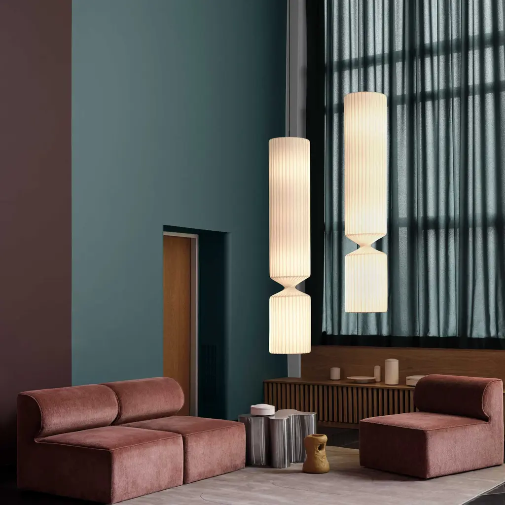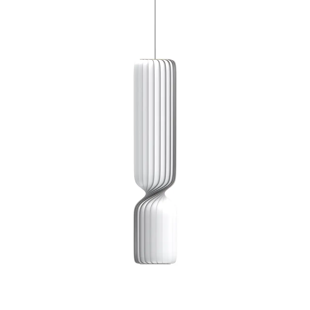 The TR41 LED Pendant Light from Tom Rossau features a distinctive Nordic design with its sculptural, asymmetrical slatted form. Available in three sizes, this series draws inspiration from the popular TR7 and TR37 lamps while introducing a unique hourglass silhouette with narrowing at the top, bottom, and lower center. Nominated for the 2021 Design Awards’ “Lamp of the Year,” the TR41 combines refined craftsmanship with striking visual contrast, making it a sophisticated statement piece that enhances any interior. Highlights