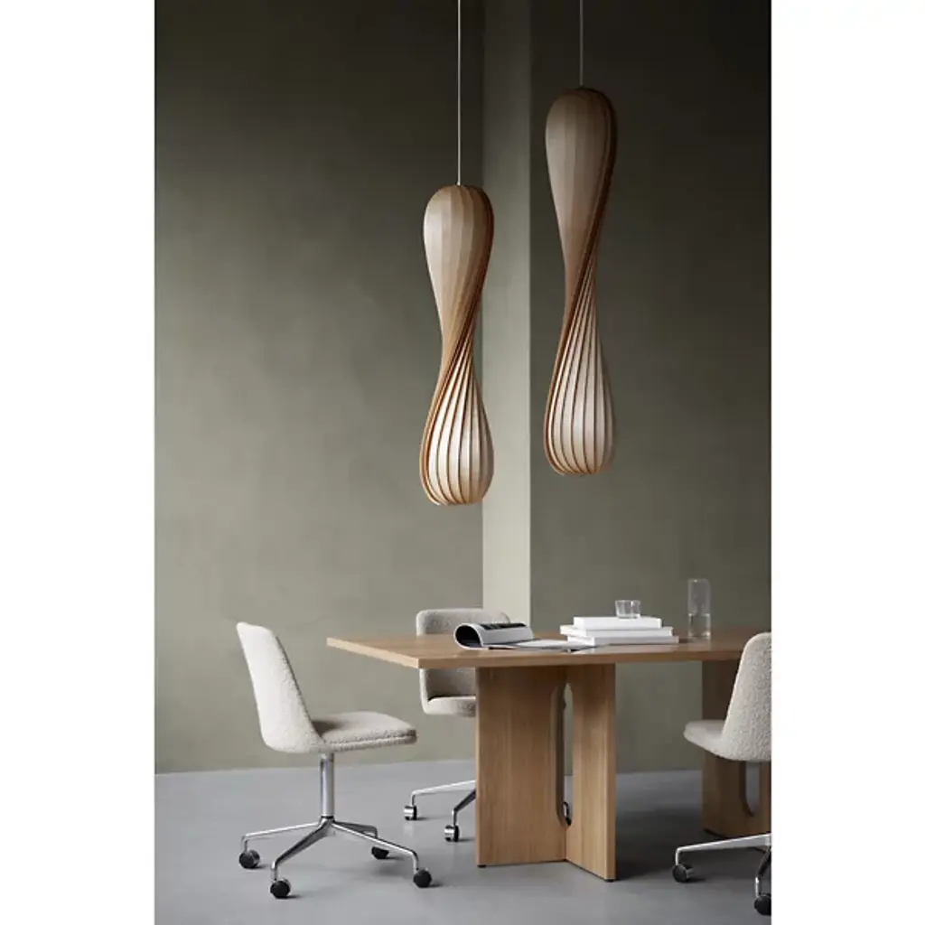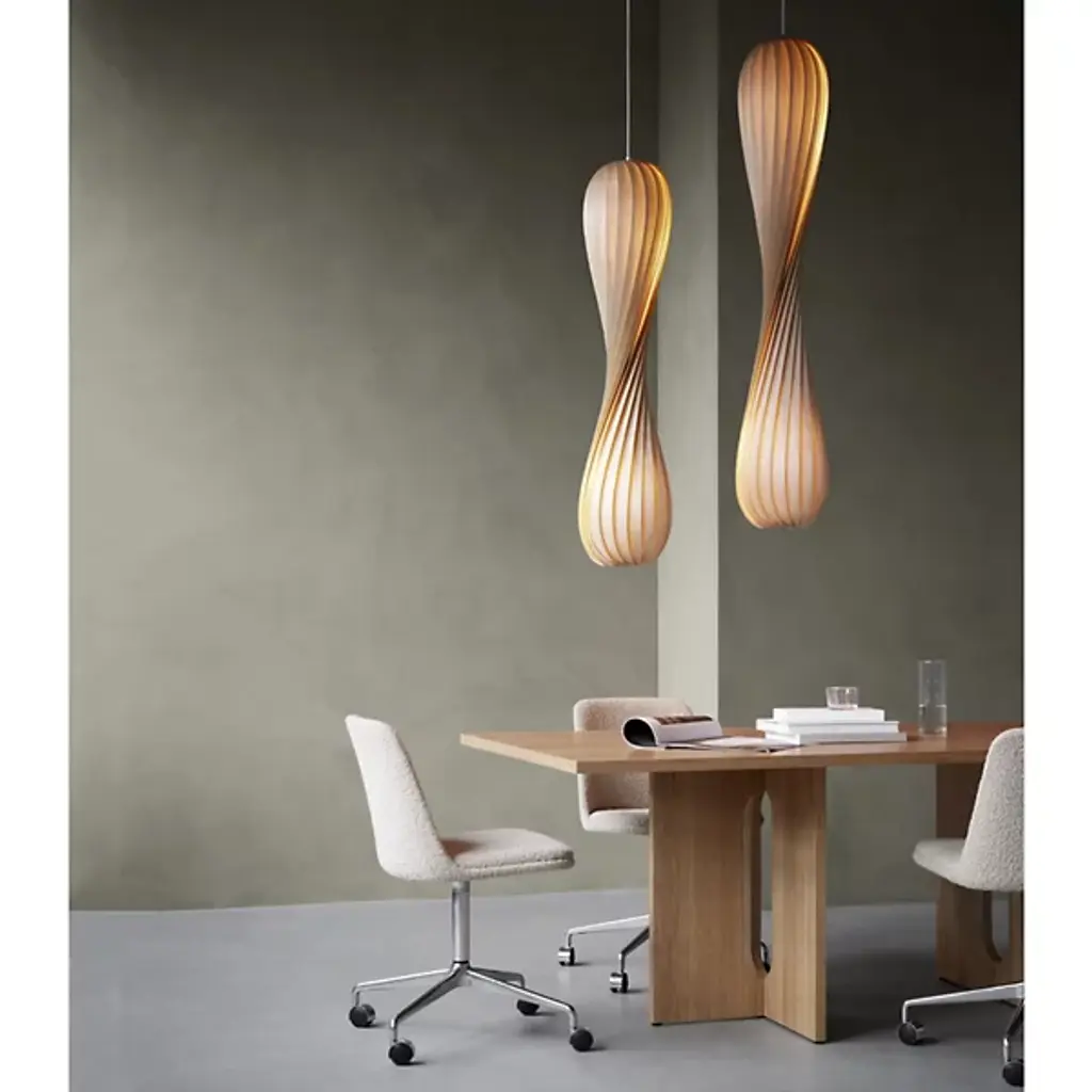 The TR7 Pendant from Tom Rossau brings a welcome touch of European elegance to interior lighting. Inspired by Rossau’s childhood in Odsherred, Denmark, an area known for its curving landscapes and remarkable light, it suspends easily from a single cable and uses a rounded hourglass shade to surround an 8.5 Watt (850 Lumens) lamp, casting a layered glow. Each fixture is handmade, with subtle imperfections adding individual personality, and the shades are made from your choice of birch, nonwoven, or plastic strips. The different materials are able to suit a specific rustic character or enhance more modern design styles as needed.