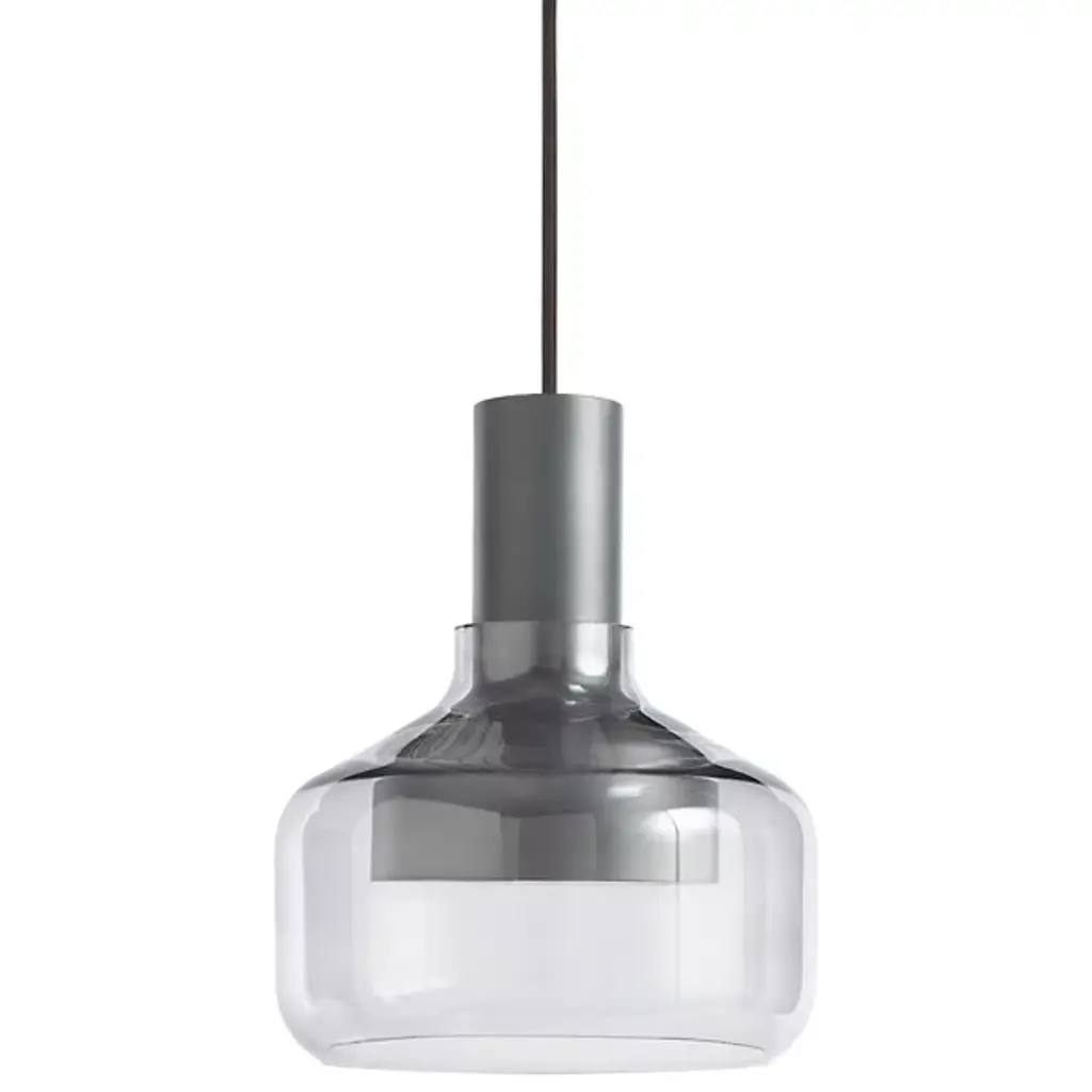 The Blu Dot Trace 3 Mini Pendant is just a little bigger, a little softer-lined than the Trace 2. Apart from that, Trace 3 shows off the same interplay between materials and shapes. It features a lightly tinted Grey Smoked glass shade floating around a steel pendant, which is powder coated or copper plated to create the perfect decorative effect whether the pendant is turned on or off.