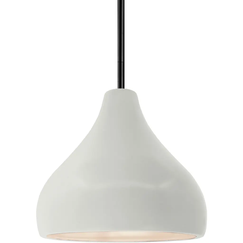 A subtly tinted glass shade rests on a metal pendant to create a simple, yet eye-catching interplay between two materials and forms. Three finishes to choose from to suit nearly any space. Mounts to ceiling.