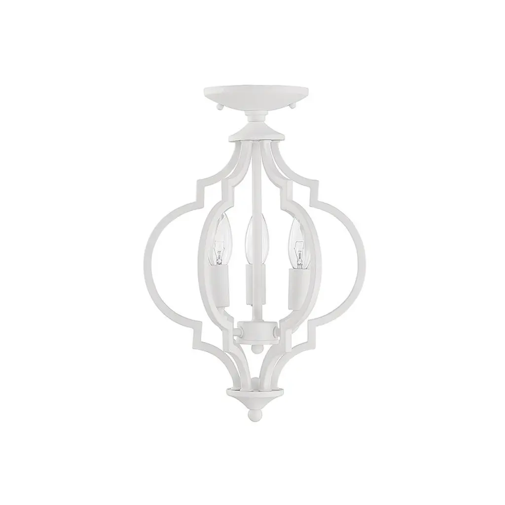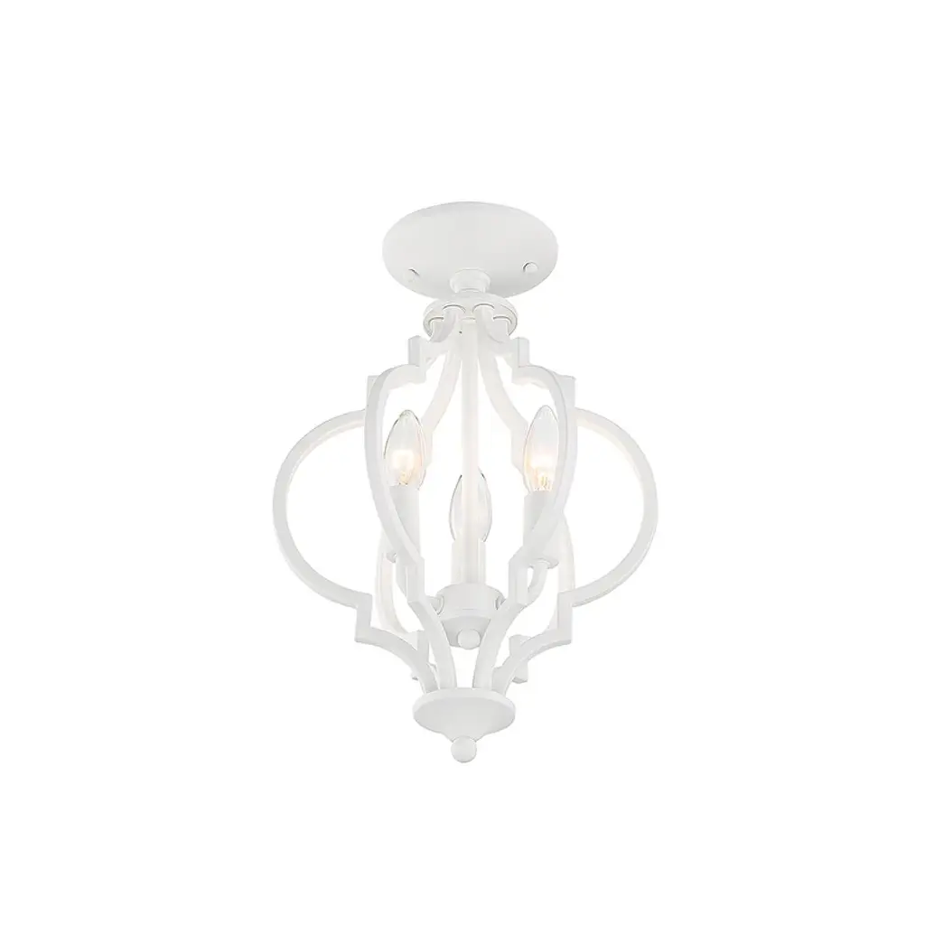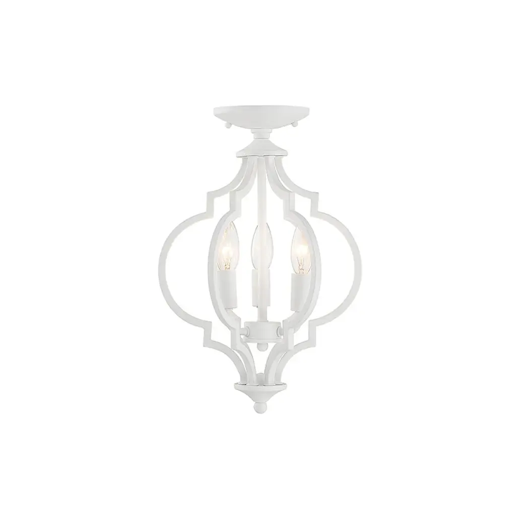 Bring a delicate and elegant touch to any room with the Trade Winds Francine 3-light semi-flush, which is actually convertible, so it can be used as a hanging pendant too! Its quatrefoil details are finished in bisque white.