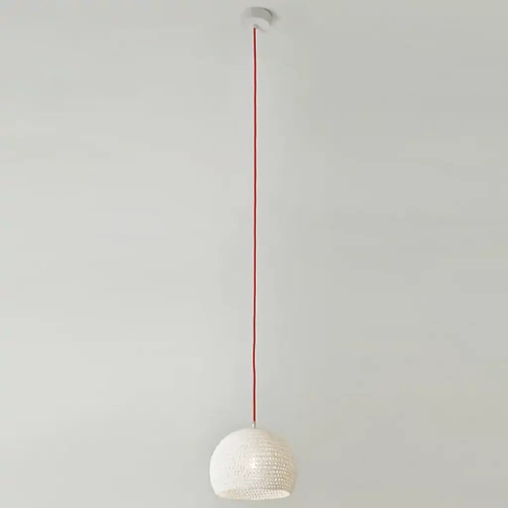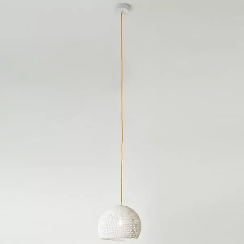 Who knew crochet could create so much patterned light? The In-Es Art Design Trama 1 Pendant is a simple dome shade handmade with a mixture of white fabric and resins. The resin helps keep the shade in its fixed shape, allowing light to shine through each opening in the stitching. The shade is always in white, while the cord is available in a range of bright colors to alter the look of this fixture.