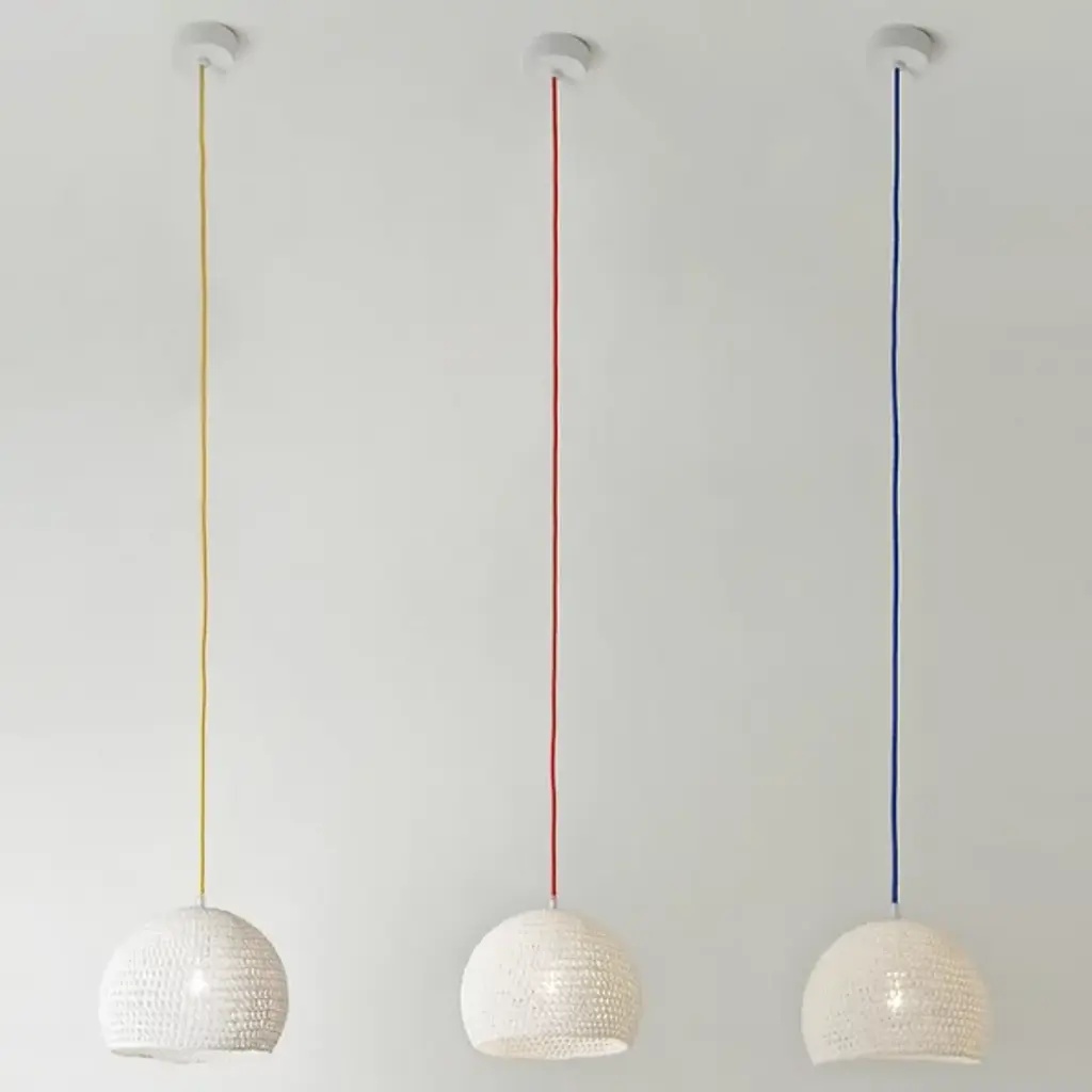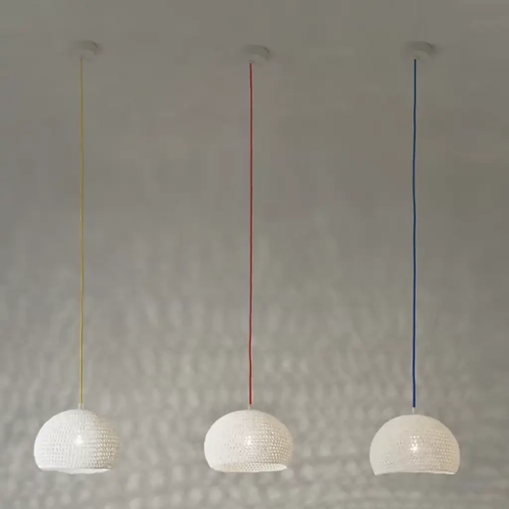 Who knew crochet could create so much patterned light? The In-Es Art Design Trama 1 Pendant is a simple dome shade handmade with a mixture of white fabric and resins. The resin helps keep the shade in its fixed shape, allowing light to shine through each opening in the stitching. The shade is always in white, while the cord is available in a range of bright colors to alter the look of this fixture.