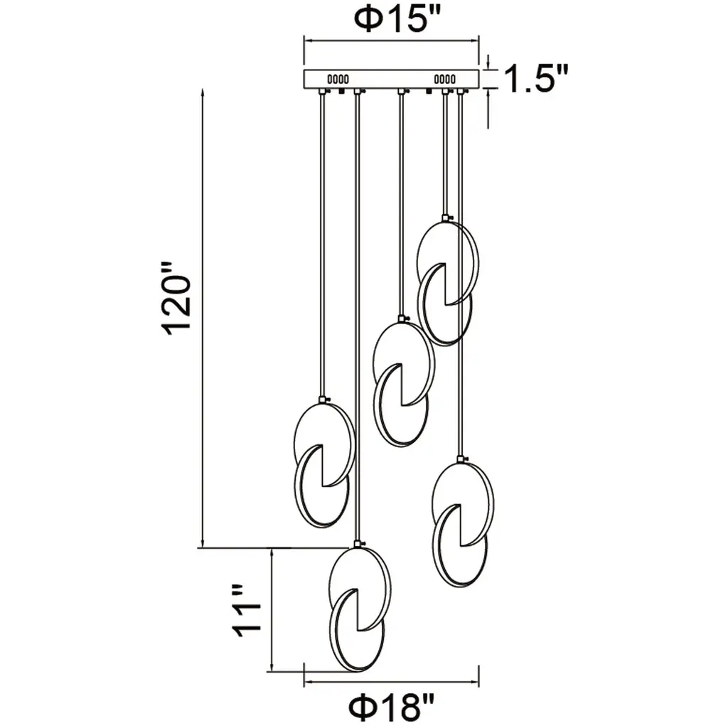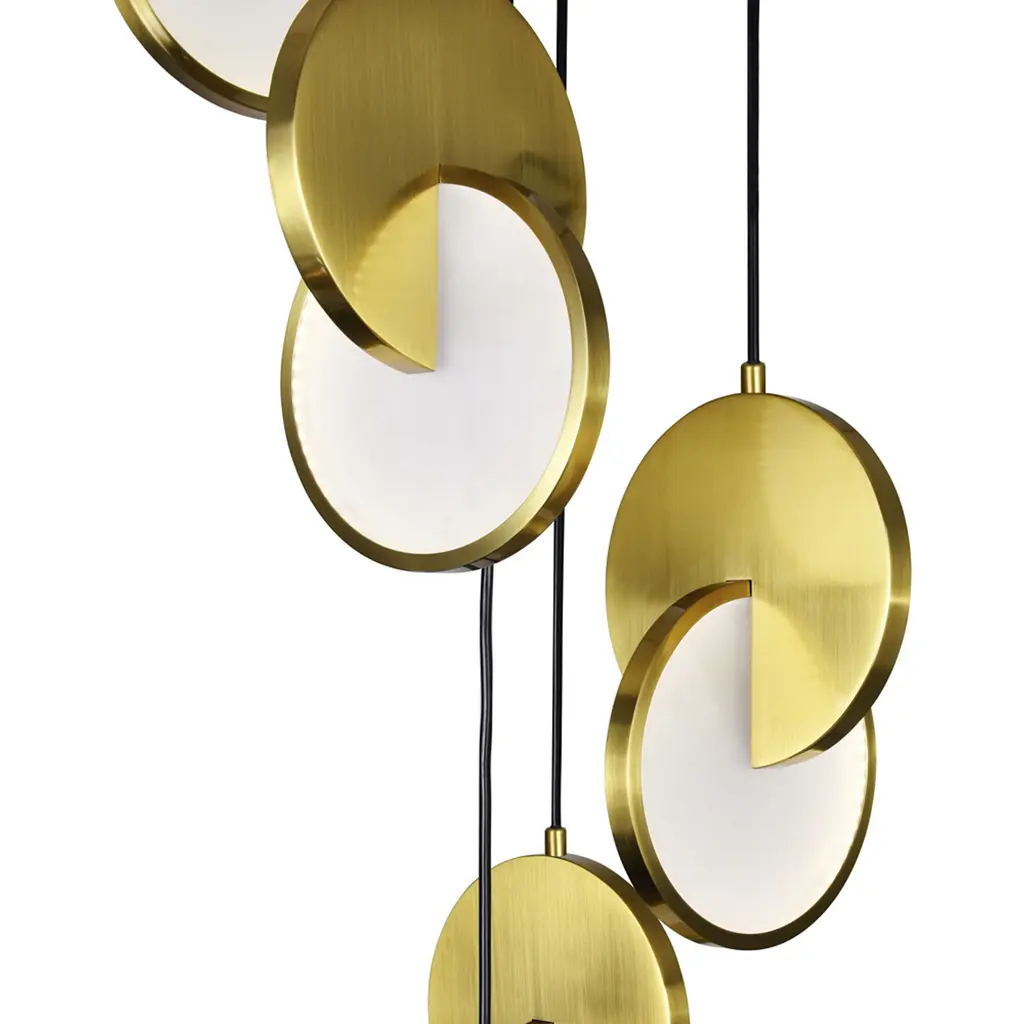 Add a sophisticated metallic touch to your space with the Tranche 5-Light Integrated LED Pendant. Designed with overlapping discs in a brushed brass finish, this 18-inch ceiling fixture offers an elegant balance of texture and tone. The matte surface provides a subtle glow while the integrated LED delivers soft, energy-efficient illumination. Perfect for dining areas, foyers, or living rooms, this pendant light makes a visual statement without overpowering the room.