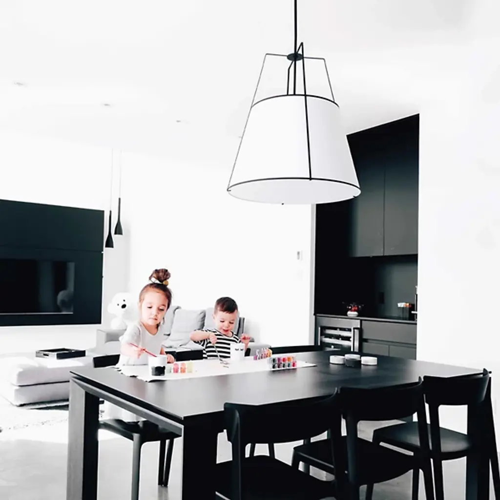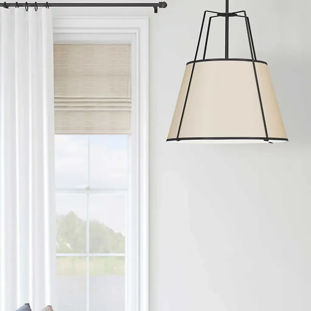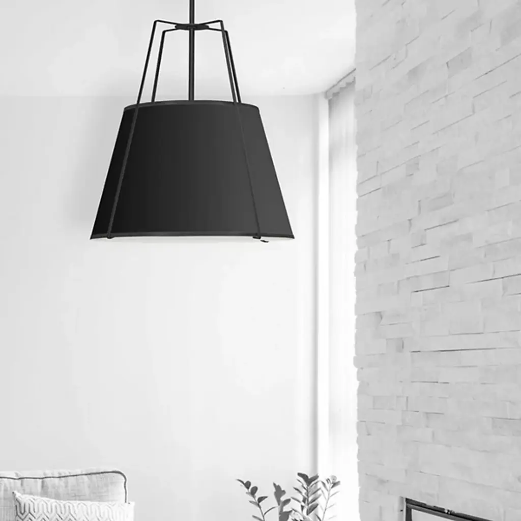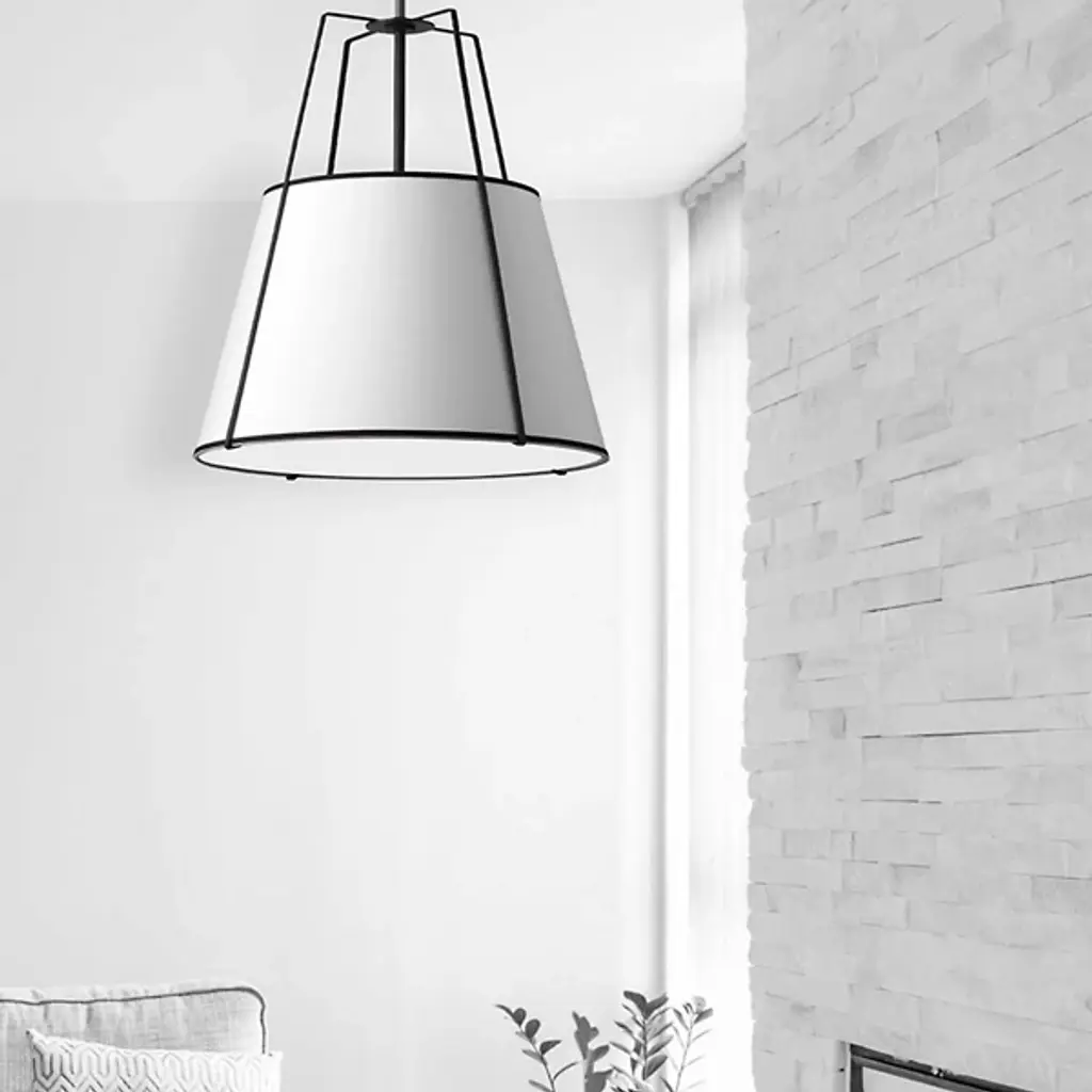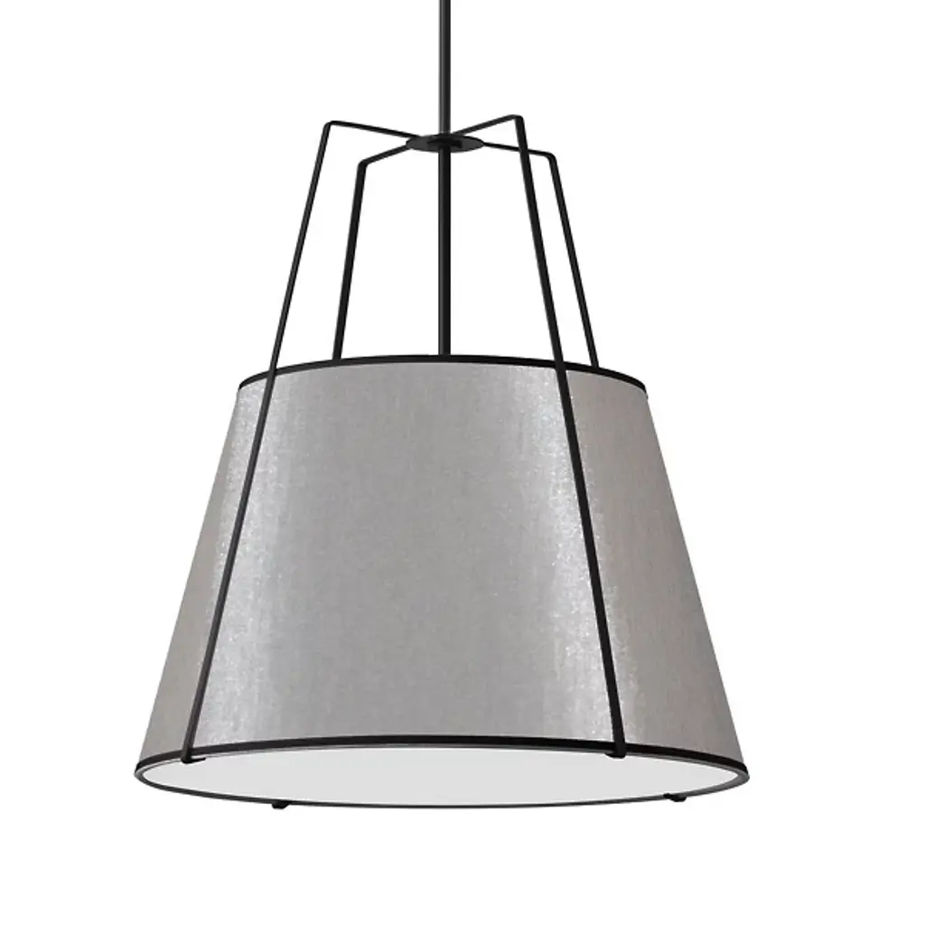 Elegant, style-minded geometry. Pair your kitchen or dining surfaces with the warm glaze of light produced by the Trapazoid Pendant from Dainolite. With only one pair of parallel sides, this trapezoid metal frame catches the eyes as it transitions from the neutral background of the shade to the open air. Hugged by the frame, the fabric shade stands out in a traditional tapered drum form. Light escapes from every direction of the shade, mellowing down into an ambient glow.