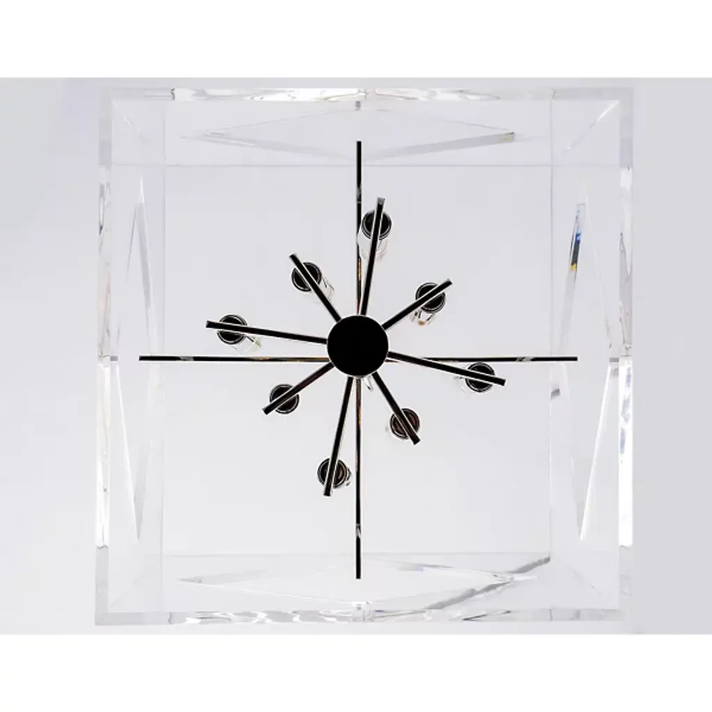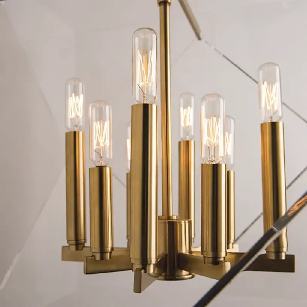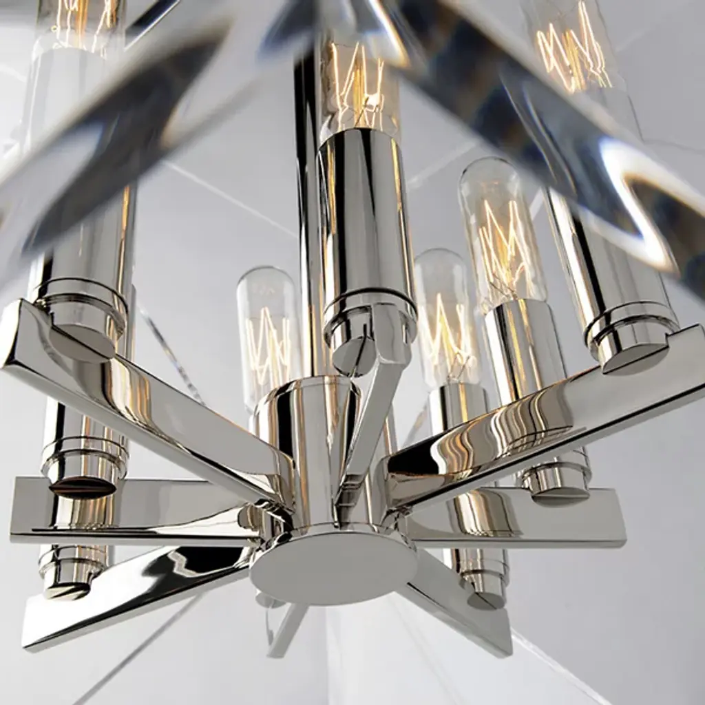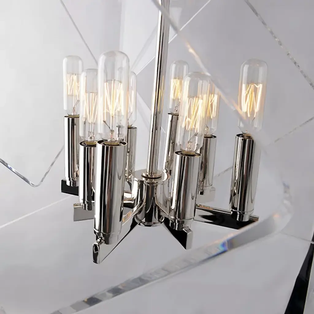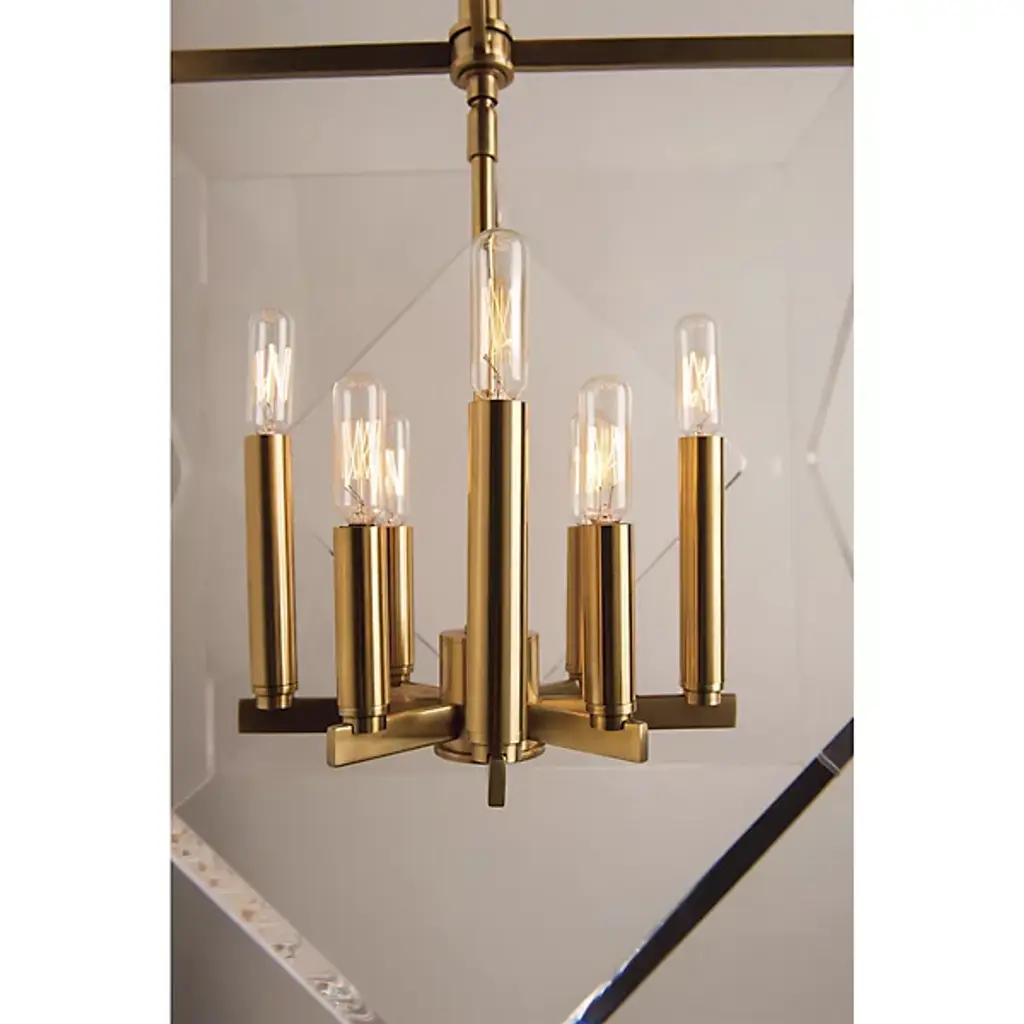 A star is born: The Hudson Valley Lighting Travis Pendant is inspired by the luxe Hollywood Regency style that ruled Tinseltown’s golden age. It features an elegantly (and cinematically) proportioned chandelier, which appears to float within a polished Acrylic Glass cube. Cutout diamond shapes heighten the interplay between reflective surfaces and refracted light. Includes a 54-inch field-adjustable chain.