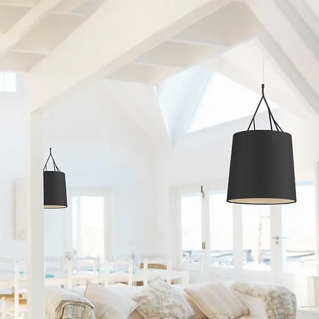 The Tree Pendant from Faro Barcelona offers contemporary style paired with subtle artistic elements. Designed by Estudi Ribaudí and made in Spain, its design is almost ethereal, extending a branching angular steel structure downward from a slim central cable. The inverted “tree branches’ disappear into a flared fabric drum shade, supporting interior lamping that blazes out directly below. Excellent for large, high-ceilinged spaces, the fabric interior obscures direct glare to the sides, glowing with ambient light and adding an element of texture to the otherwise simple fixture.