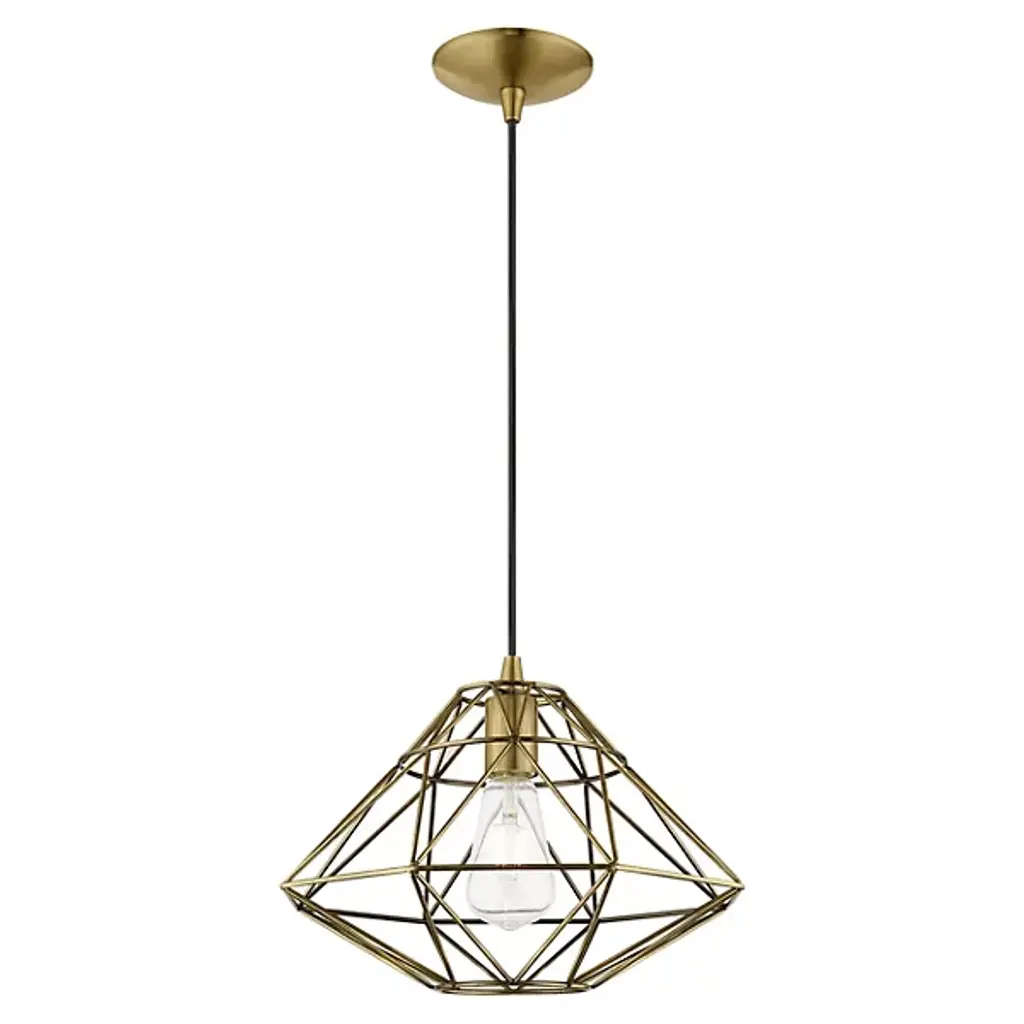 Brighten ceiling spaces with ease using the Trent Diamond Mini Pendant from Alder & Ore. A stylish design that plays equally well in an upscale environment, it’s also simple enough to serve well at home, incorporating a faceted, diamond-shaped accent shade around its damp-listed single socket. This complex shade structure contrasts well with the simple cable and disc canopy that support it, creating an endearing wash of light enhanced by the shadows cast by each angular brace.