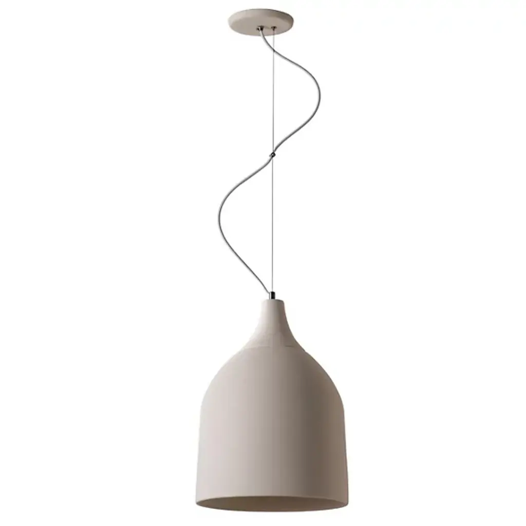 The Trento Pendant from Geo Contemporary evokes the shape of a raindrop frozen in time. It appears to be in mid-descent, its elongated form tapering to a point. The pendant's unique profile offers a fresh take on overhead lighting, breaking away from traditional designs. Its smooth, unblemished surface provides a canvas for light to play upon, creating subtle gradients as it curves. When illuminated, the fixture casts a concentrated pool of light below, ideal for task-oriented spaces or as accent lighting.