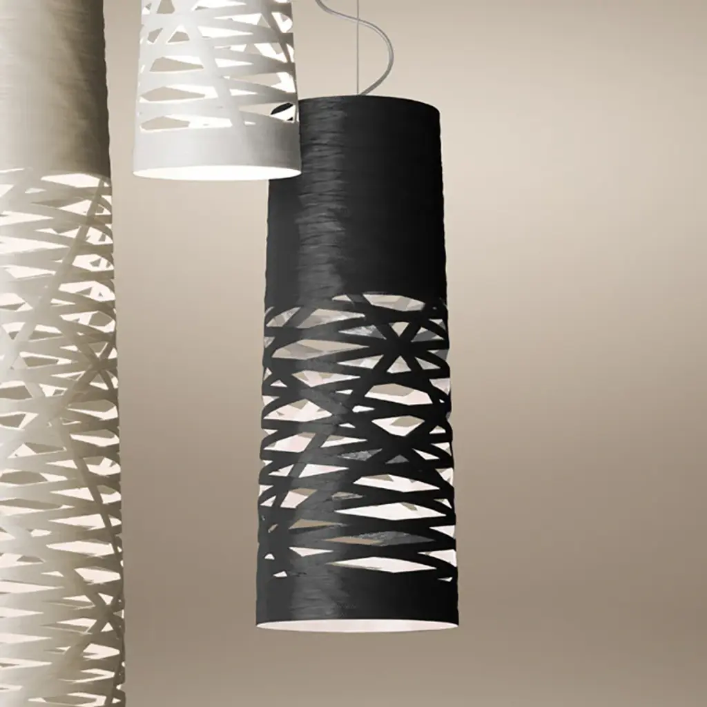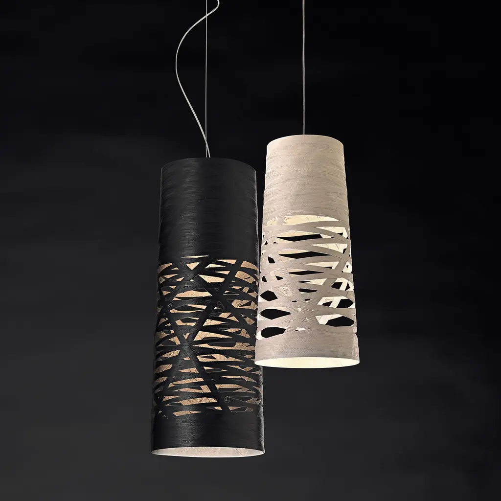 The seduction of a woman’s tress was the initial inspiration for the Tress family of lamps. This design-come-true by Foscarini was achieved through the development of a completely original technological process, involving a fiberglass and resin tape woven with orderly casualness to become the structure and aesthetics of the lamp. Tress changes personality according to its color: it is light and discrete in white, strong and decisive in black, which makes the contrast between the interior and the exterior even more evident. The mini, small and medium size of Tress hanging version has been designed to illuminate a specific area of the space below. All sizes can be used alone, to enhance a shadowy corner, or any other space in a room, or it can be used in line to create effects of perspective. Features