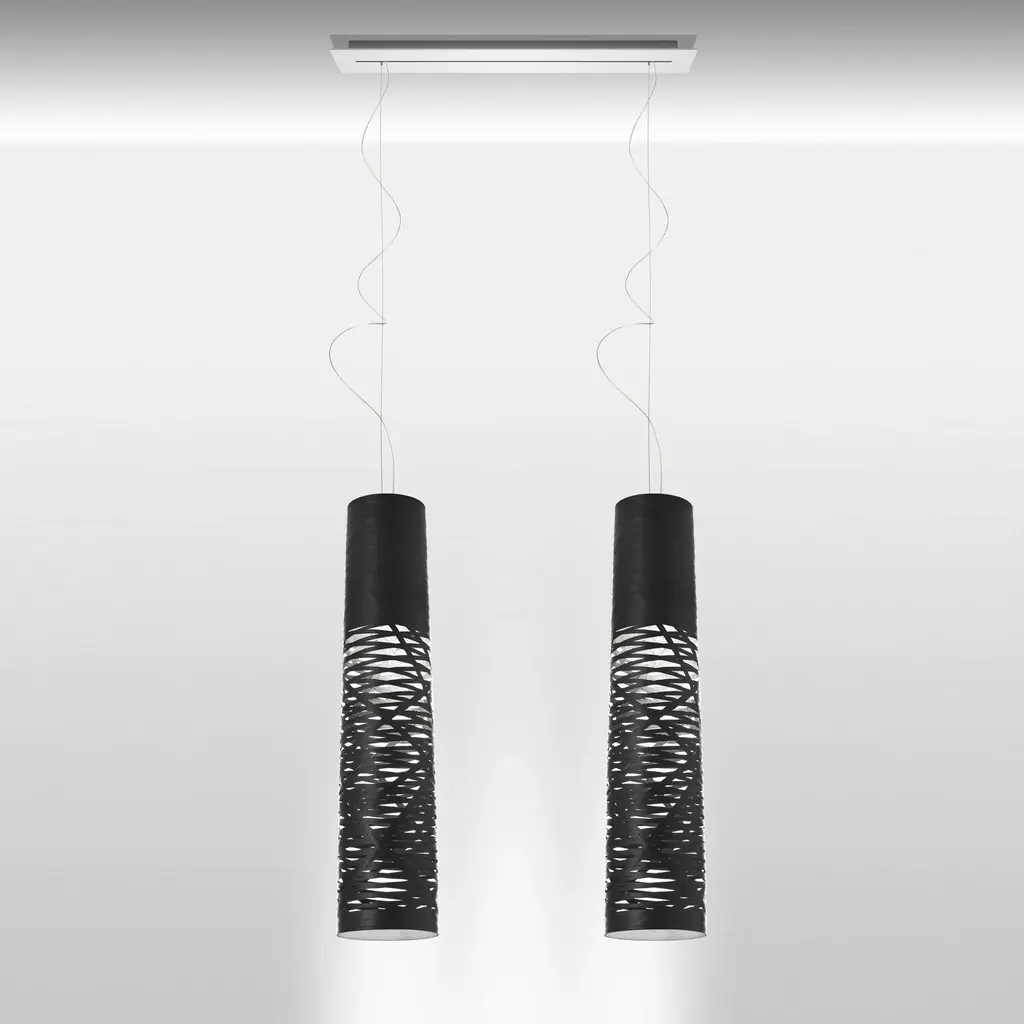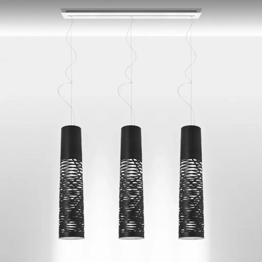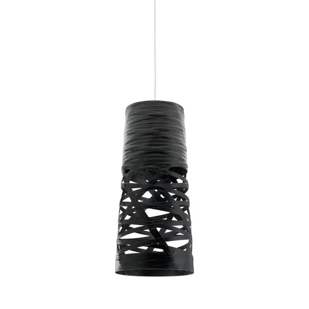 The seduction of a woman’s tress was the initial inspiration for the Tress family of lamps. This design-come-true by Foscarini was achieved through the development of a completely original technological process, involving a fiberglass and resin tape woven with orderly casualness to become the structure and aesthetics of the lamp. Tress changes personality according to its color: it is light and discrete in white, strong and decisive in black, which makes the contrast between the interior and the exterior even more evident. The mini, small and medium size of Tress hanging version has been designed to illuminate a specific area of the space below. All sizes can be used alone, to enhance a shadowy corner, or any other space in a room, or it can be used in line to create effects of perspective. Features