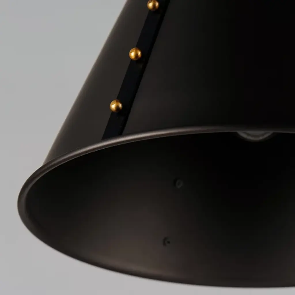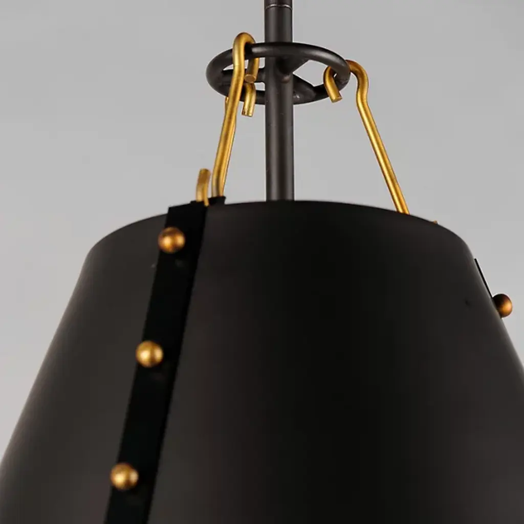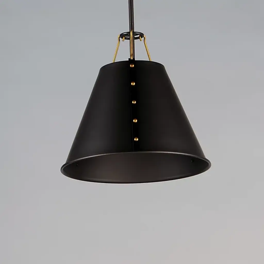 Riveting style achieved with meticulous craftsmanship. Satisfy your eye for detail with the layered design of the Trestle Small Pendant from Maxim Lighting. This singular piece is ideal for an intimate setting or communal area. It presents a clean geometric silhouette the contemporary home can appreciate. The shade is metal spun by skilled craftsmen. Artisans adorn the shade with eye-catching rivets on the sides and charming hooks on top. With openings on either end, the shade pushes out an ambient and task light underlined by its comfortable diffused quality.
