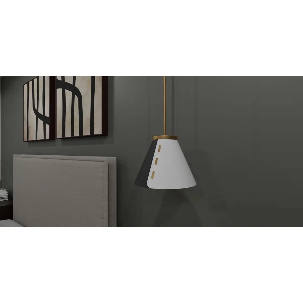 Trette semi-flush mount or pendant lights feature a fun, color block design that pairs well in any modern or contemporary setting. The black and white metal shade is complemented by a brushed weathered brass finish, adding a touch of luster to the sleek silhouette. Hung individually or in a grouping, Trette pendants make a bold statement over any kitchen island or bar area.
