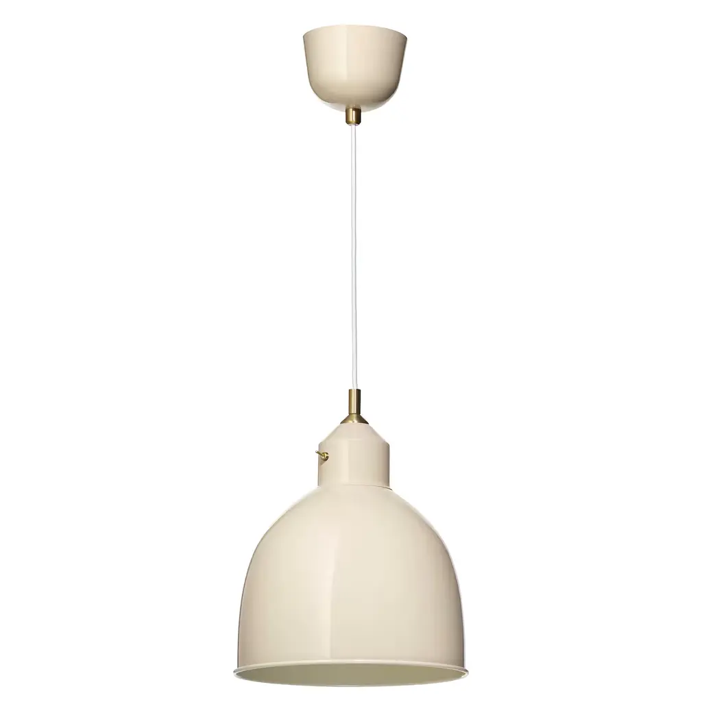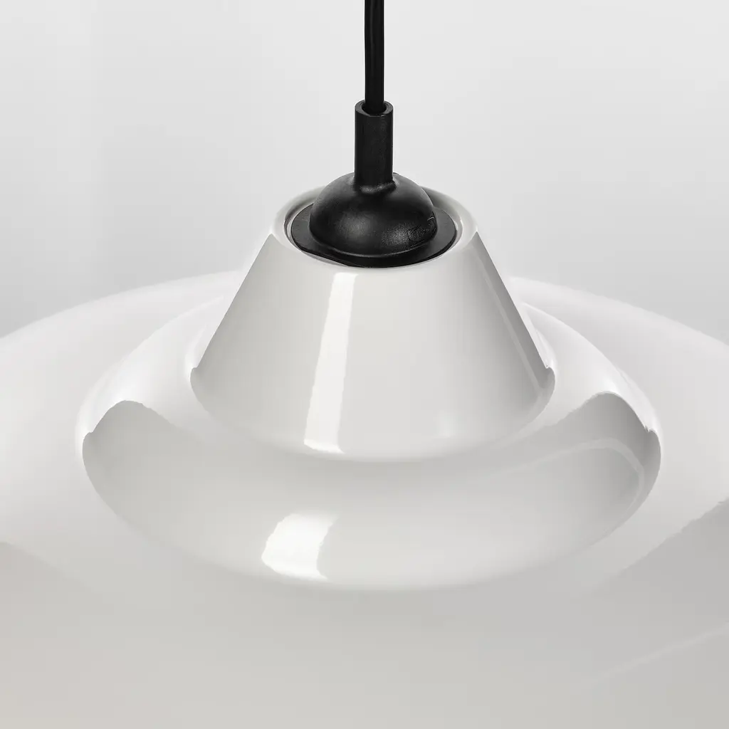 TRETTIOEN Pendant lamp - white 15 ". The lamp spreads a good, directed light and is great to hang over your dining table or kitchen island. Light bulb sold separately. IKEA recommends LED bulb E26 globe opal white. To be hung on a ceiling hook. Ceiling hook not included.