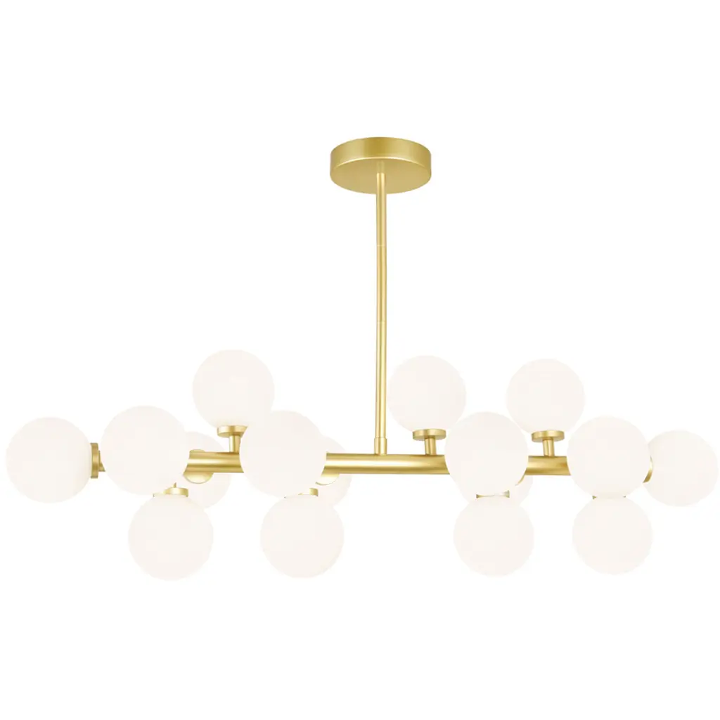 Trevi Multi Arm 10 Pendant by CTO LightingMaterials: satin brass with matt opal glass shades.Dimensions: D 64 x W 169 x H 64 cmAlso available in bronze with matt opal glass shades.A grand statement of graphic precision, the Multi-arm Trevi is a series of satin brass or bronze arms arranged to illuminate a larger space and can be scaled to fit any interior.All our lamps can be wired according to each country. If sold to the USA it will be wired for the USA for instance.240v - 10 x E14, 25w max (or 4.5w LED 2700k)110v - 10 x E12, 25w max (or 4.5w LED 2700k)(no bulbs supplied)Founded in 1998 by Chris and Clare Turner, CTO Lighting launched their first collection on the guiding principles of designing lights of uncompromising quality, using only the finest materials and working with elite British craftsmen. This collection of lighting symbolised elegance and the excellence of British design and manufacturing; the benchmark for all future collections.