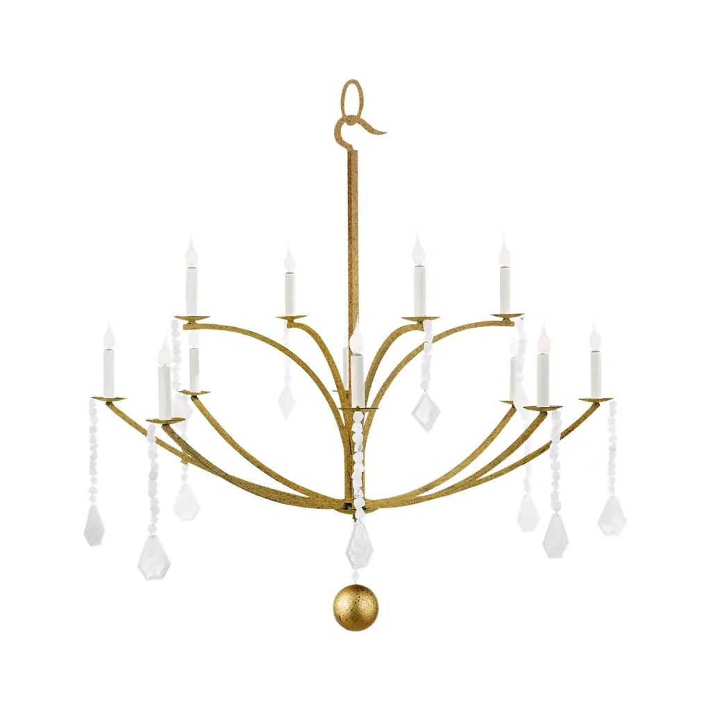 The Trevi collection is an exhilarating celebration of light, reflection, and tranquility. Chandelier with gently curved hand carved crystals create fluid movement in profiles of grace and majesty. Shown in our Standard Gold Leaf finish.