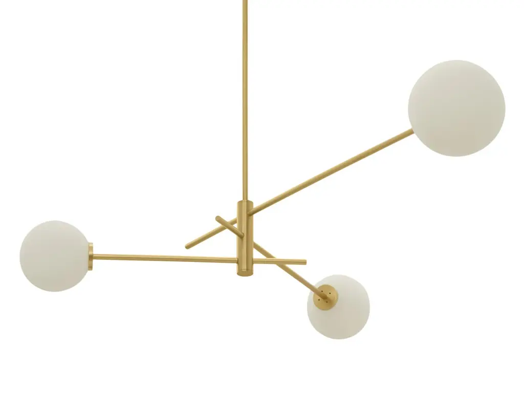 Trevi three pendant by CTO LightingMaterials: satin brass with matt opal glass shadesAlso available in dark bronze with matt opal glass shadesDimensions: H 25 x W 110 cm All our lamps can be wired according to each country. If sold to the USA it will be wired for the USA for instance.Other sizes available3 x E12, 25w max (or 4.5w LED 2700k)weight 6kg (13.2lbs)supplied with 1000mm drop rod as standard (adjustable on site)additional drop rod at $190 per 1000mm (39.4”)for installation a minimum drop rod of 50mm is required, maximum 3000mm (118”)no bulbs suppliedmounts onto 4” junction boxFounded in 1998 by Chris and Clare Turner, CTO Lighting launched their first collection on the guiding principles of designing lights of uncompromising quality, using only the finest materials and working with elite British craftsmen. This collection of lighting symbolised elegance and the excellence of British design and manufacturing; the benchmark for all future collections.