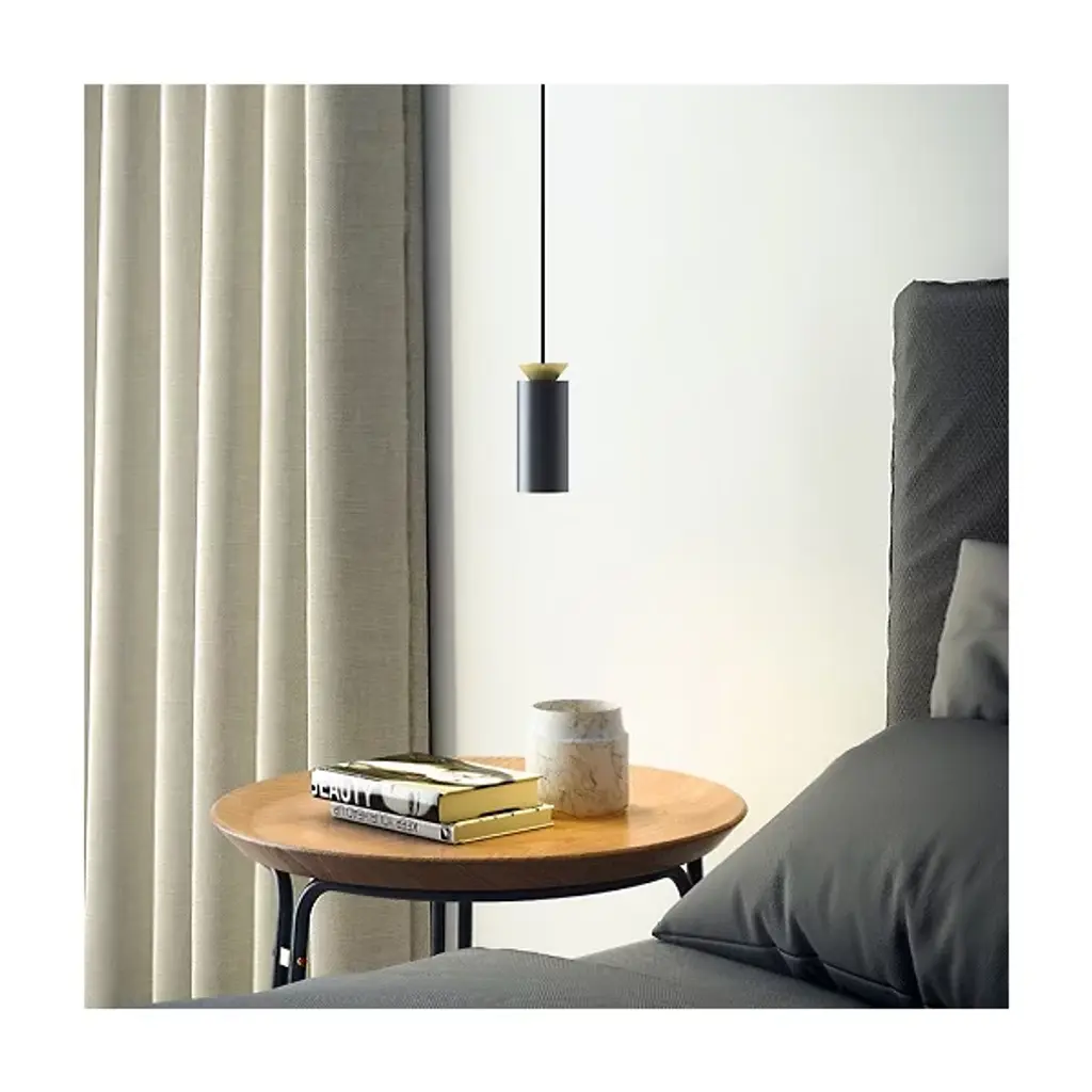The Triana Mini Pendant from Carpyen packs a punch in sheer lighting with true minimalist design. The contemporary construction is made by Spanish design studio Laproduqtora, a team whose forte is executing products with undeniable precision. An aluminum housing is capped by a coned accent, and a bottom opening lets LED light flow out for a clean downlight. Suspended with a cloth wire from a pleasant circular canopy, the piece floats elegantly with grace and sophistication.