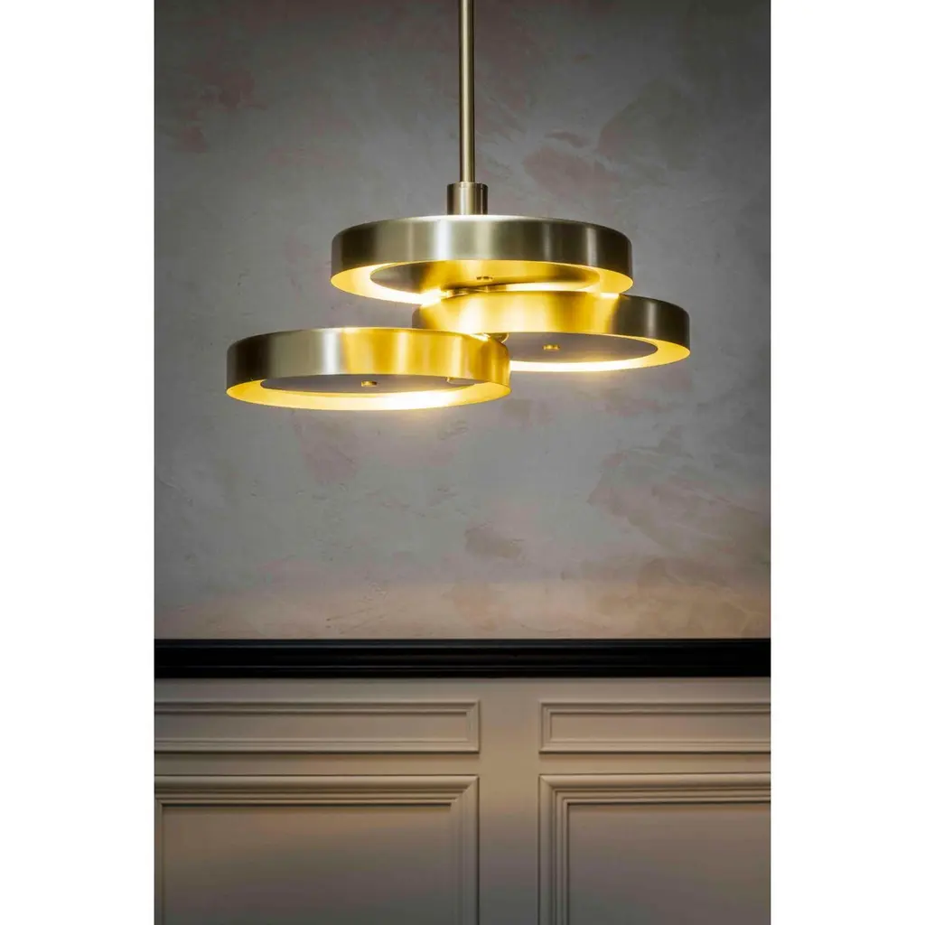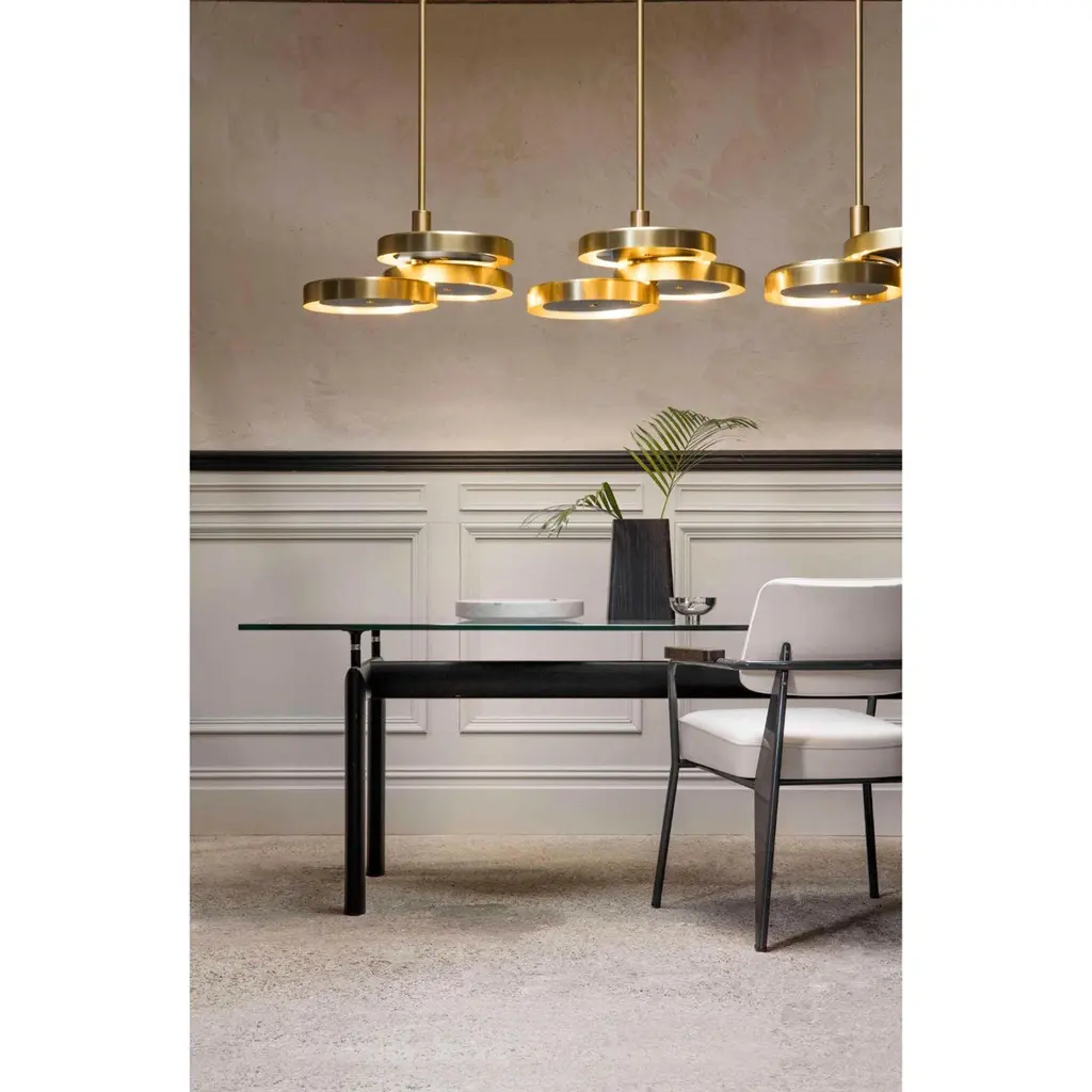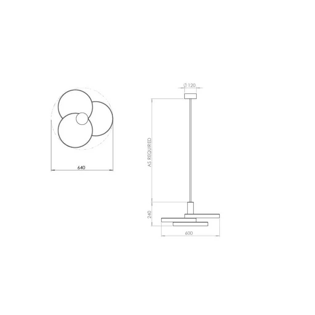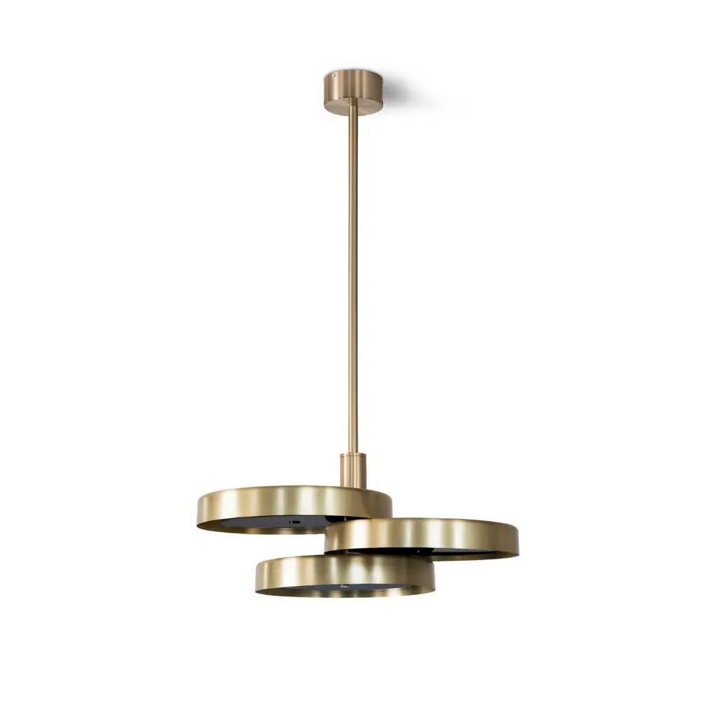 Triarc pendant light black by Bert FrankDimensions: 25 x 62 cmMaterials: Brass, acrylicAvailable with opal or black diffusers.Three intersecting brass discs hang from a single drop rod. Grouped together with two or more pendants – a trio of Triarcs, for example – it creates a sculptural focal point, a stunning visual statement.When Adam Yeats and Robbie Llewellyn founded Bert Frank in 2013 it was a meeting of minds and the start of a collaborative creative partnership with engineering at the core.Both men share a love of design and deep respect for the heritage of British engineering. Both wanted to create high-end products that would Stand the test of time and fly in the face of throwaway consumerism. The partnership has resulted in award-winning lighting and accessories that fuse the integrity of the small-scale workshop with timeless aesthetics reimagined for today.The two men work closely together from concept to end product. Robbie’s imagination and occasional flights of fancy are informed by Adam’s understanding of engineering principles and fabrication techniques. Equally, Adam's designs are often the starting point for a collection. In that sense Bert Frank is a true creative collaboration. As a result, every designed is honed to perfection, every detail carefully considered.