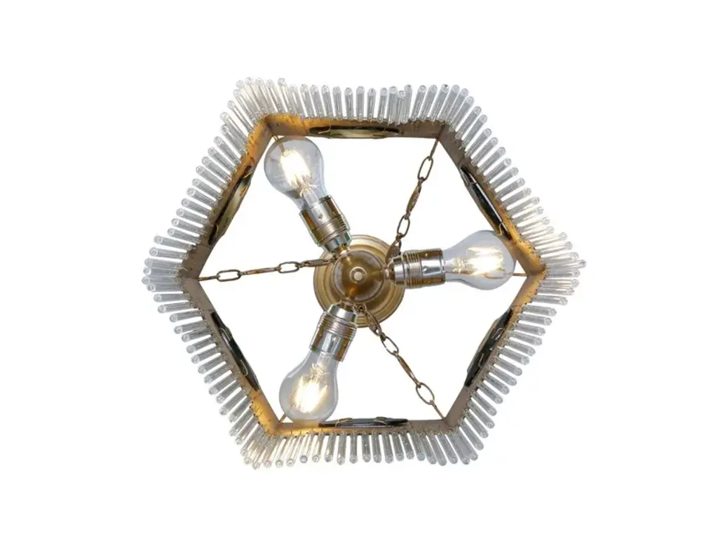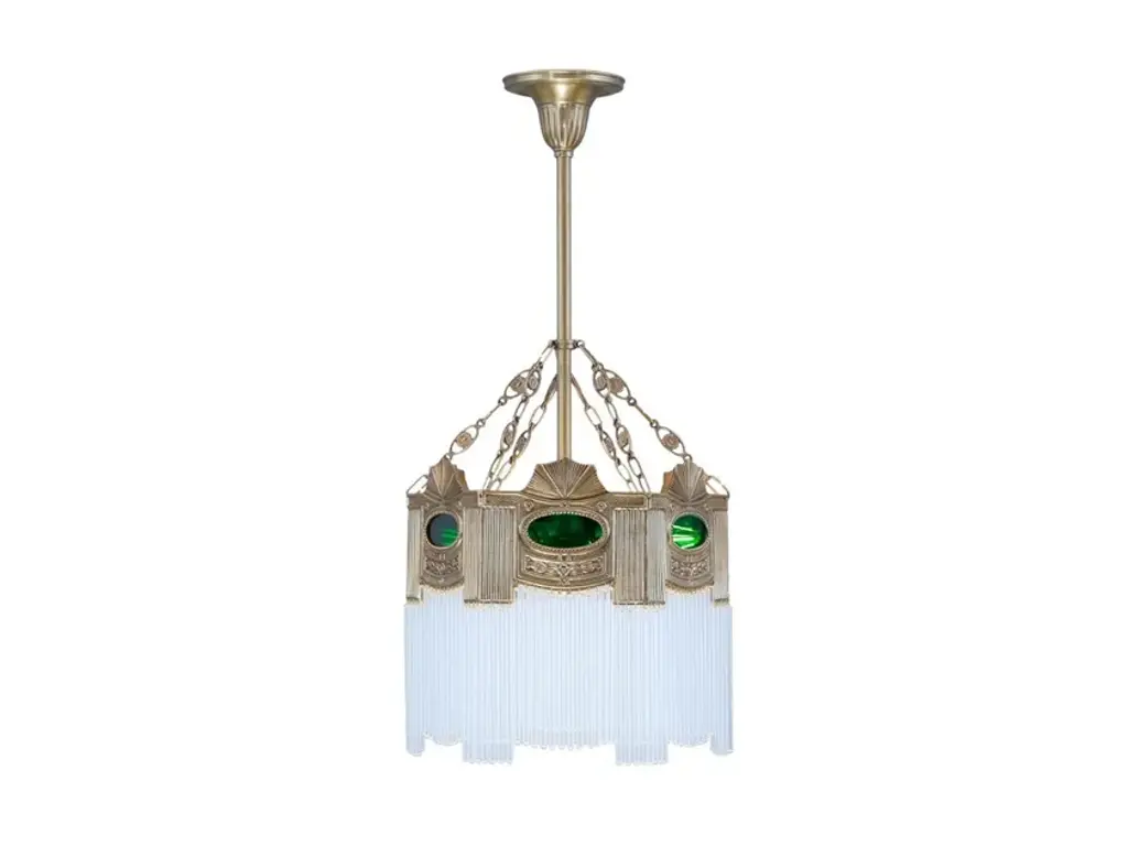 Triest I is a suspension lamp made of brass available in different finishes.Finishes: Antique, Shiny brass, Matt brass, Shiny nickel, Matt nickelCapacity: max. 3x75W E27This marvellous collection could be a perfect set lighting for a fairy tale feature. All lamps are richly adorned, some even feature a coloured glass decor. The glass tubes are not only used as diffusers,but they can be found on the structure itself as well, thus giving the lamp even more magic.
