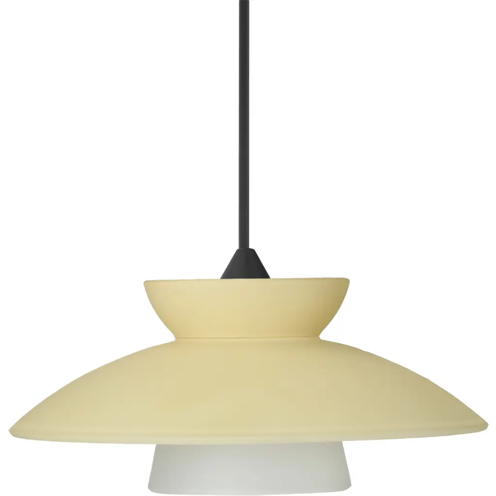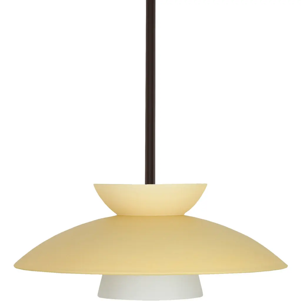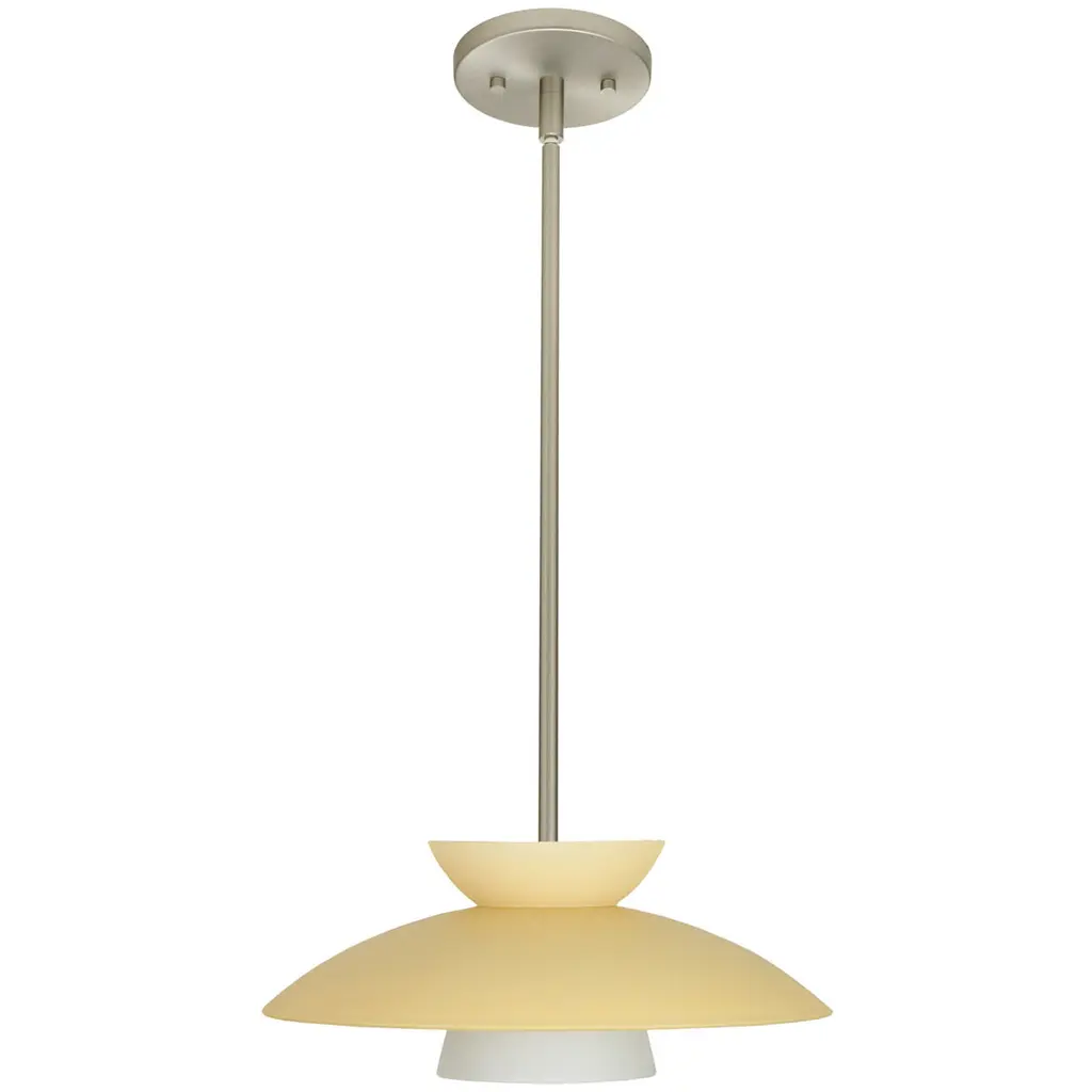 Trilo 15 is comprised of three complementary glass segments, resulting in a playful glass display. Our Champagne glass is a light yellow pressed glass, with a white inner layer. When lit this gives off a light that is functional and soothing. Champagne is a pleasing neutral color that suits almost any décor. The smooth satin finish on the clear outer layer is a result of an extensive etching process. This handcrafted glass uses a process where every glass is consistently produced using a press mold, keeping variations to a minimum. The stem pendant fixture is equipped with an adjustable telescoping section, 4 connectable stem sections (3", 6", 12", and 18") and low Profile flat monopoint canopy. These stylish and functional luminaries are offered in a beautiful Satin Nickel finish.