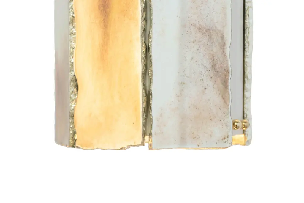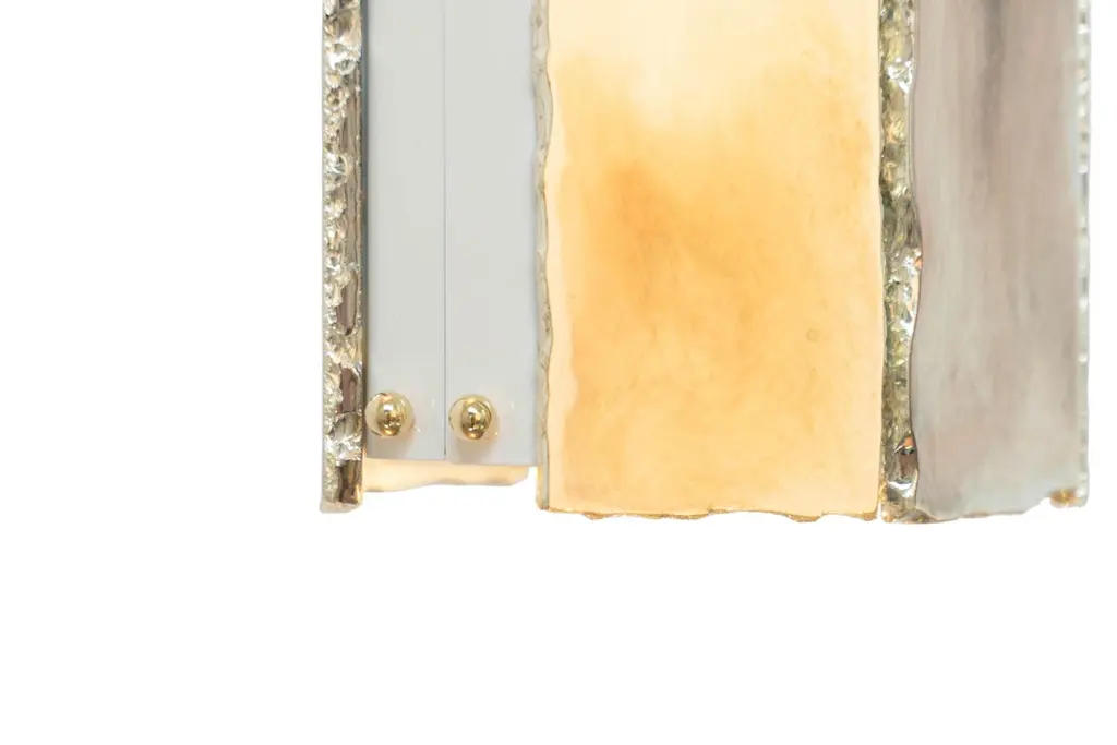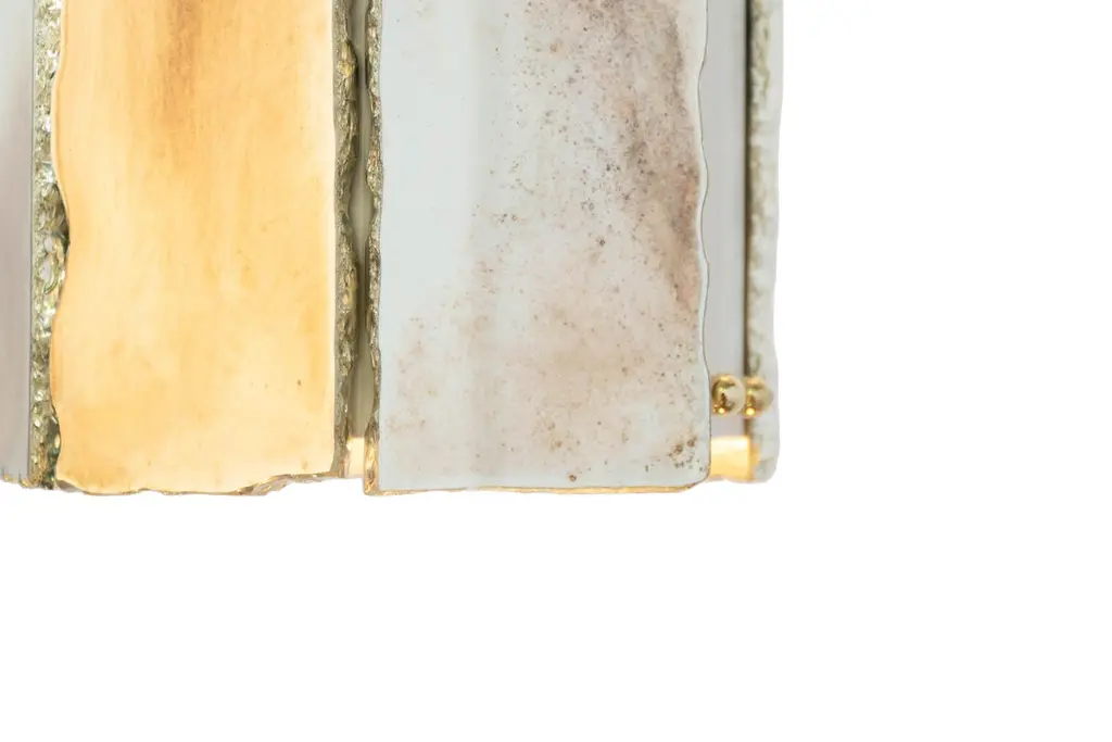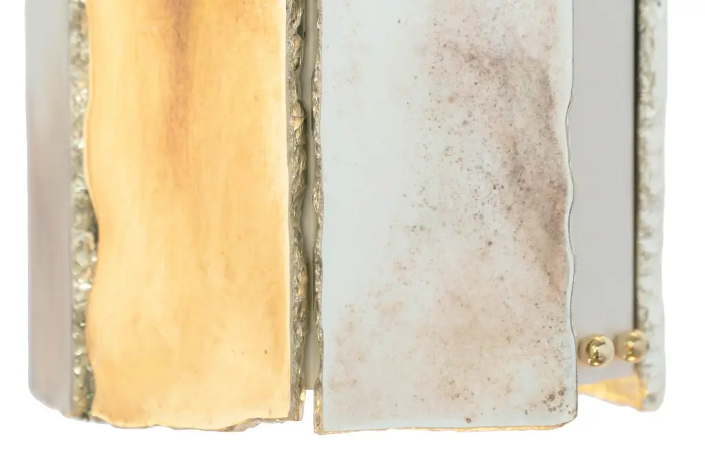 TRILOGYRays of lights embracing each otherIn our Atelier beats the heart of a living heritage, that of craftsman-ship. For 22 years we explore the beauty of sculpting each single item by our artisan hands.Such vibrant energy comes into life in Sabrina Landini’s DNA by revealing the unpublished silvering technique, thanks to a deep dive into glass life. Trilogy' s architectural form, reminiscent of the 1930s/1940s, draws the wall space with its light and shadows, understated elegance and three-dimensionality.Clean lines, graphic rays of light, masterfully cut edge, to reveal such incredible vibrancy, the perfect set where the silvered glass patina shines. Available in a wide range of silvered glass colors:Sabrina's silvering, jade, sun, black, white, smoky grey, aquamarine, rose.CE certified and Electrified: US, EU, UK , 2xE27-E26 lamp holders, dimmable.