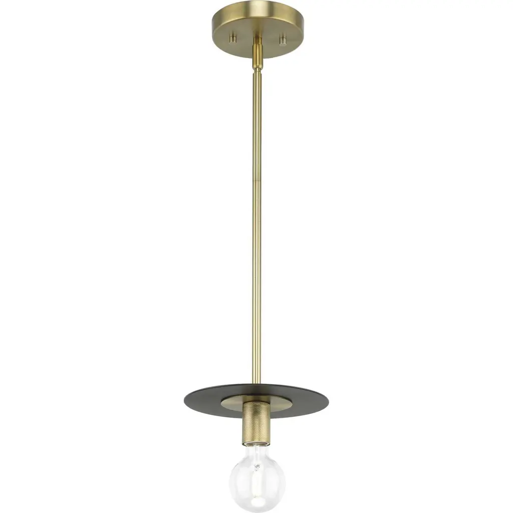 An intriguing flat disc shade forms the basis of the Trimble Collection, whose mid-century modern inspiration is perfect for open spaces in mid-century modern and luxe industrial settings. A two-toned finish on the shade features smooth brushed bronze and classic matte black plus a knurled metal lamp socket is coated in brushed bronze providing additional rich visual interest. Use vintage-style bulbs to add modern appeal and to castsp illumination to kitchens, bars and breakfast nooks.