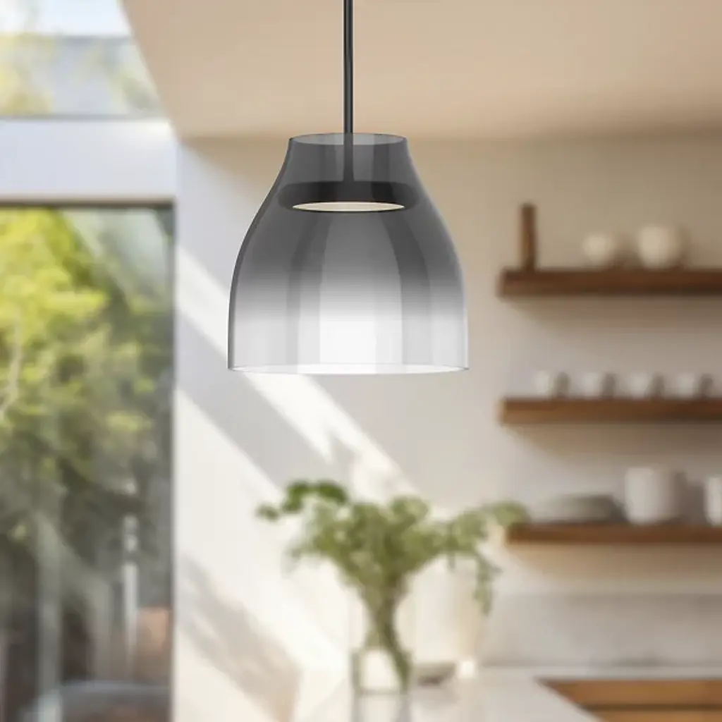 Refined design with limitless style. Set the mood, create an aesthetic, and warm up your rooms with the Trinity LED Pendant from Kuzco Lighting. Make it a lone feature or a part of a beautiful series over your kitchen island or dining table. This pendant creates a handsome formation as a slim downrod suspension and compact canopy let them stand tightly together. You're instantly drawn to the seductive volume of the lampshade. This shade proves simple in silhouette, intriguing with gentle curves. Subtly concealed inside, a low-profile lamp head sports a cutting-edge LED module. This LED light flows downward with a diffused quality, setting an inviting glow over your table surface.