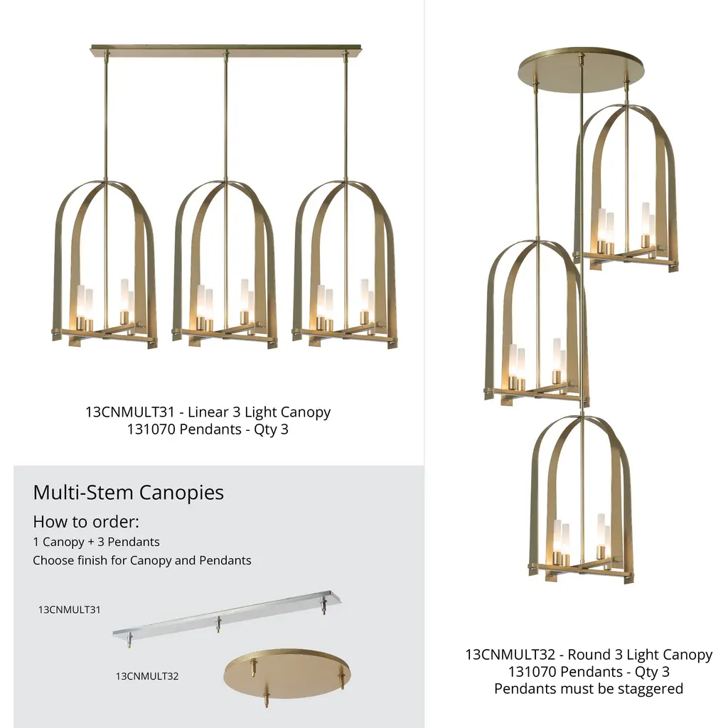 A timeless design of intersecting arches that create an open, airy feel, the Triomphe 4-Light Pendant is a handmade piece of modern craftsmanship with a transitional design for any style. Our adjustable Multi-Stem system allows for easy height adjustment, and the modern, frosted glass tubes give off a warm glow.