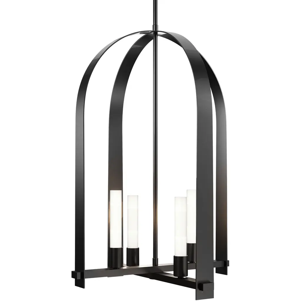 A timeless design of intersecting arches that create an open, airy feel, the Triomphe 4-Light Pendant is a handmade piece of modern craftsmanship with a transitional design for any style. Our adjustable Multi-Stem system allows for easy height adjustment, and the modern, frosted glass tubes give off a warm glow.