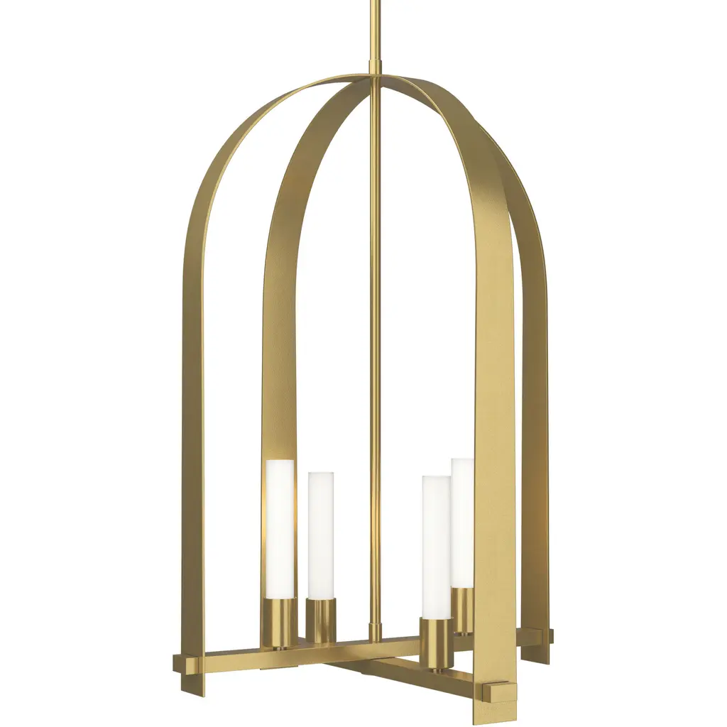A timeless design of intersecting arches that create an open, airy feel, the Triomphe 4-Light Pendant is a handmade piece of modern craftsmanship with a transitional design for any style. Our adjustable Multi-Stem system allows for easy height adjustment, and the modern, frosted glass tubes give off a warm glow.