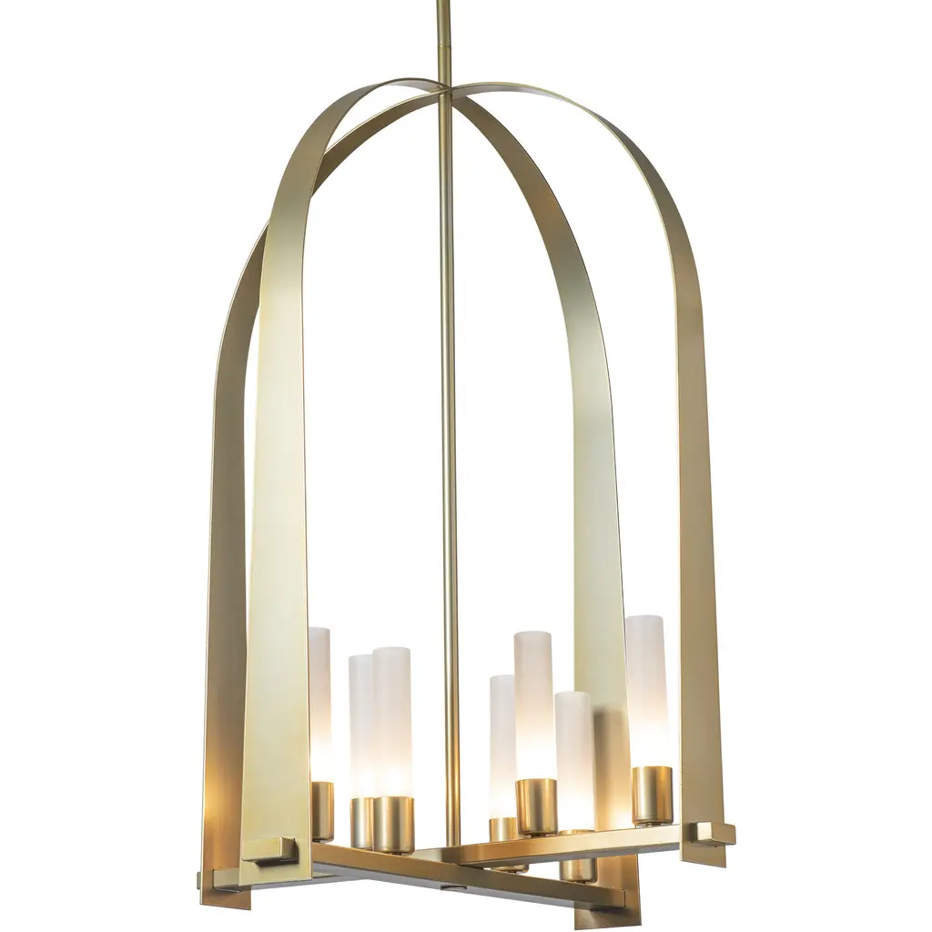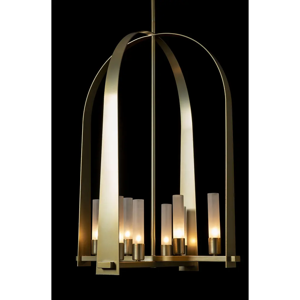 Our signature design features intersecting arches which come together at a central point in this Triomphe 8-Light Pendant. A modern take on a classic style, this pendant is perfect for your dining room, kitchen, foyer or great room. A Multi-Stem system offers great height adjustability. The Craftsman tenon details are are created by hand and bring an air of sophistication and elegance to any space.