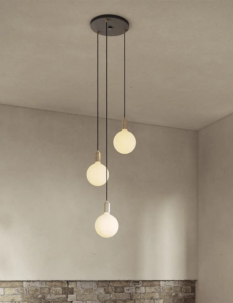 Tala is an award-winning lighting brand that combines the best of British design with the latest LED technology to create beautiful, energy-efficient lighting solutions for any interior space. The round-bodied Sphere IV bulb is a soft stunner overhead in this triple pendant light. The minimalist pendant features three hanging lights at staggered heights bringing a sculptural dimension to the design.