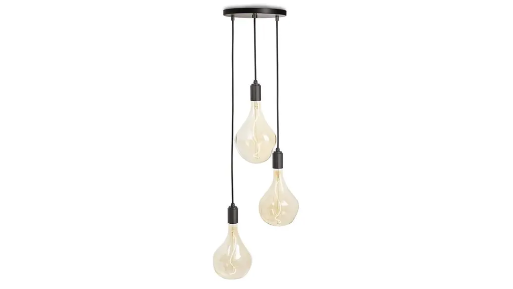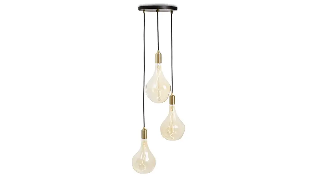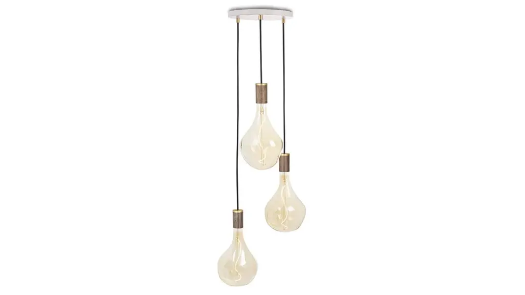 The Triple Pendant combines our most popular bulb and fixture – the Voronoi II and Brass, Graphite, Oak or Walnut pendants – together with a brand new circular canopy, to create a stunning ceiling light feature. Features – Three Voronoi II bulbs – Dimmable LED filament – Edison screw base cap – Three Brass, Graphite, Oak, or Walnut Pendants – 13 ft black cord – Circular ceiling canopy in white or black