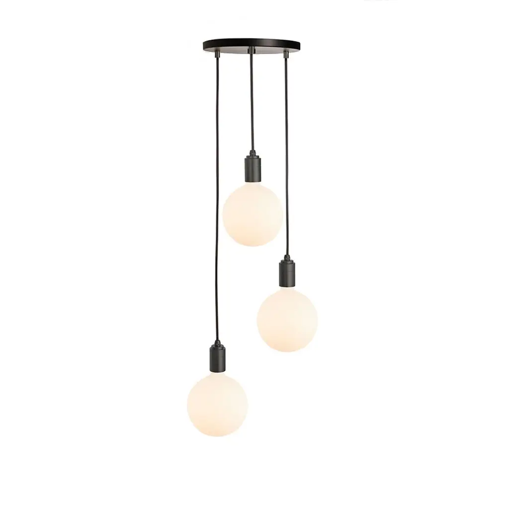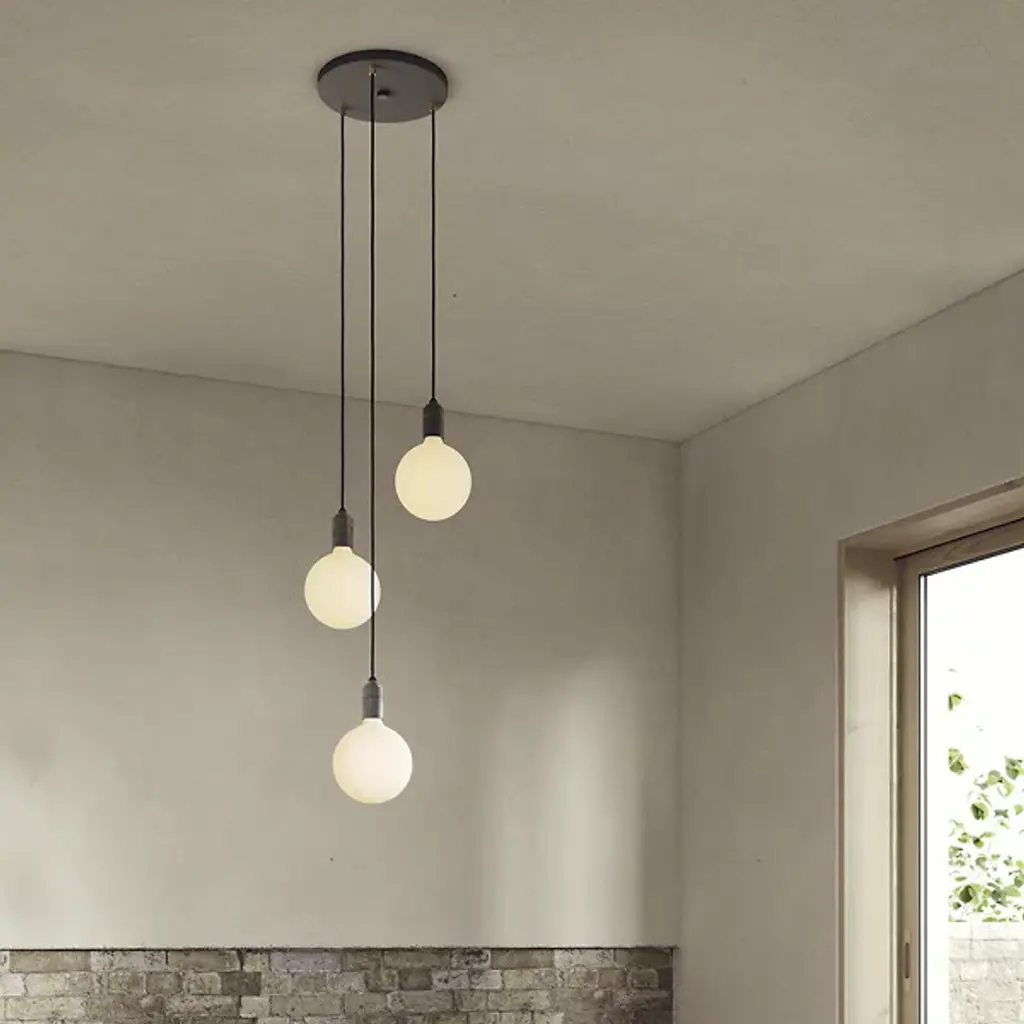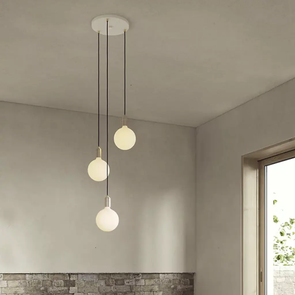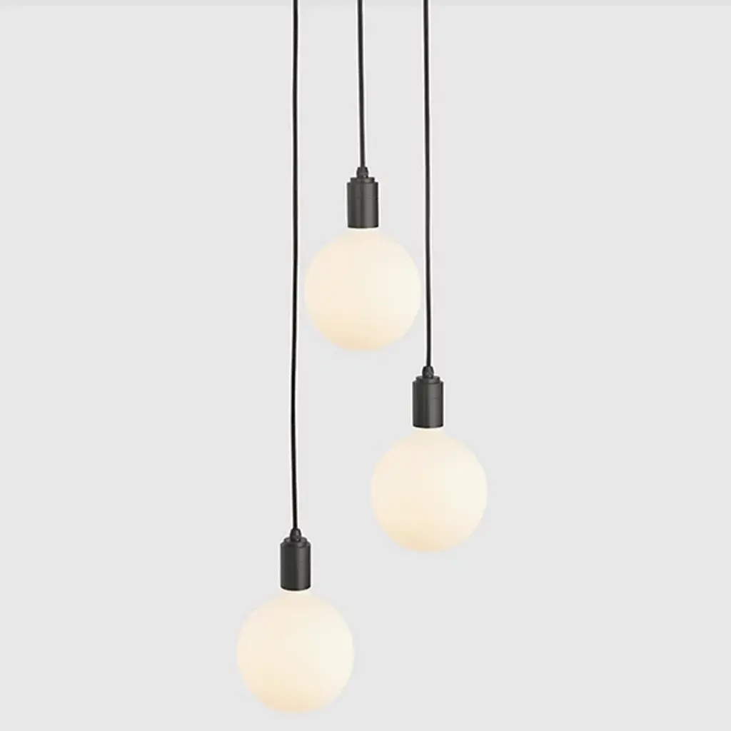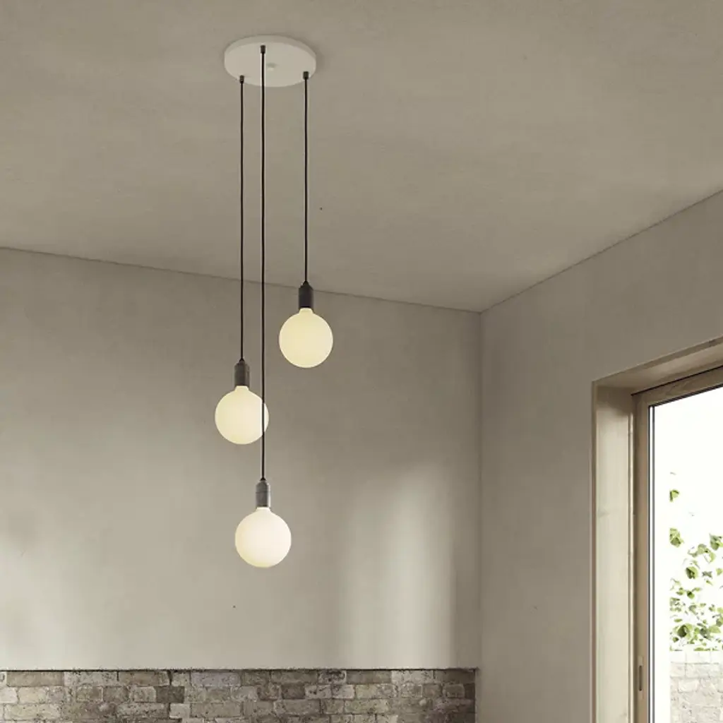 A trio of bright, wondrous globes. Enhance your room’s refined, inviting feel with the Triple Pendant with Sphere IV from Tala. UK-based Tala produces designs that say enduring through the use of energy-efficient technologies and timeless form. Thoughtfully designed from top to bottom, this piece graces your ceiling with a low-profile circular canopy. In a beautiful cascade, fine cords come streaming down, holding up handsome lamp holders. Matte white spheres are fitted at the ends; they stand out in open space even with the lights off. These oversized, opaque globes do wonders, giving the light a perfectly diffused quality. They house LEDs with dim to warm and flicker-free tech that’s a treat to the eyes. Turn the trio on and be treated to a generous glow that invites and delights.