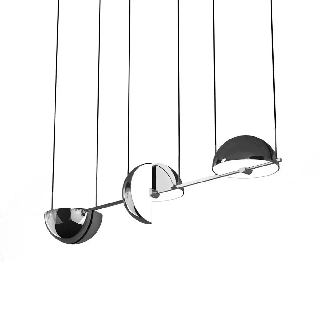 Triple trapeze pendant by jette scheib dimensions: 37.5 x 152 x 28 cm (ø) (cord length: 300 cm) a chrome version is also available. Trapeze is as much a single pendant as it is an endless system of possibilities. The square tube has a build in connector which make it easy and fun to mount multiple lamps together. You can connect two lamps next to each other or use a straight and/or a 90-degree connector. This piece is attributed to the mentioned designer/maker. It has no attribution mark and no official proof of authenticity, however it is well documented in design history. I take full responsibility for any authenticity issues arising from misattribution, up to 250v (europe/uk standard).