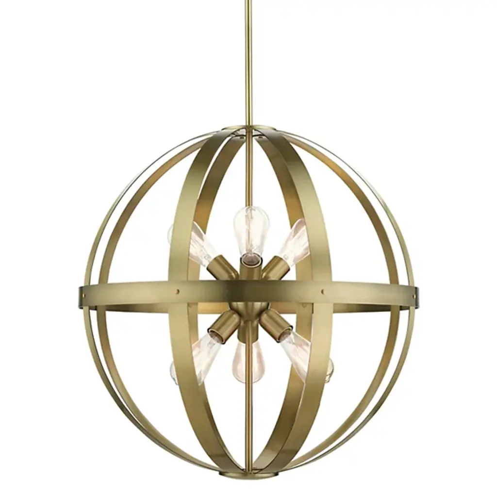 A globe of mid-century wonder. There’s no containing the lively light and attractive sputnik visuals of the Tristan Globe Pendant/Chandelier from Alder & Ore. The piece puts a distinctly modern spin on 50s styling. It gets the eyes traveling through the curved contours of its hand-arranged steel bands. Fitted with stylish rivets, the bands combine to create an open yet boldly silhouetting globe. Peek through and you’ll find a classic sputnik arrangement of lamp holders. Bulbs face in every direction to create a starburst of rich ambient light.