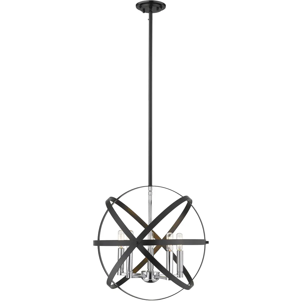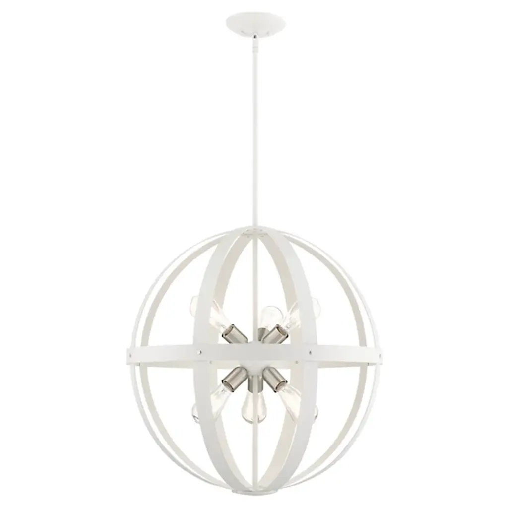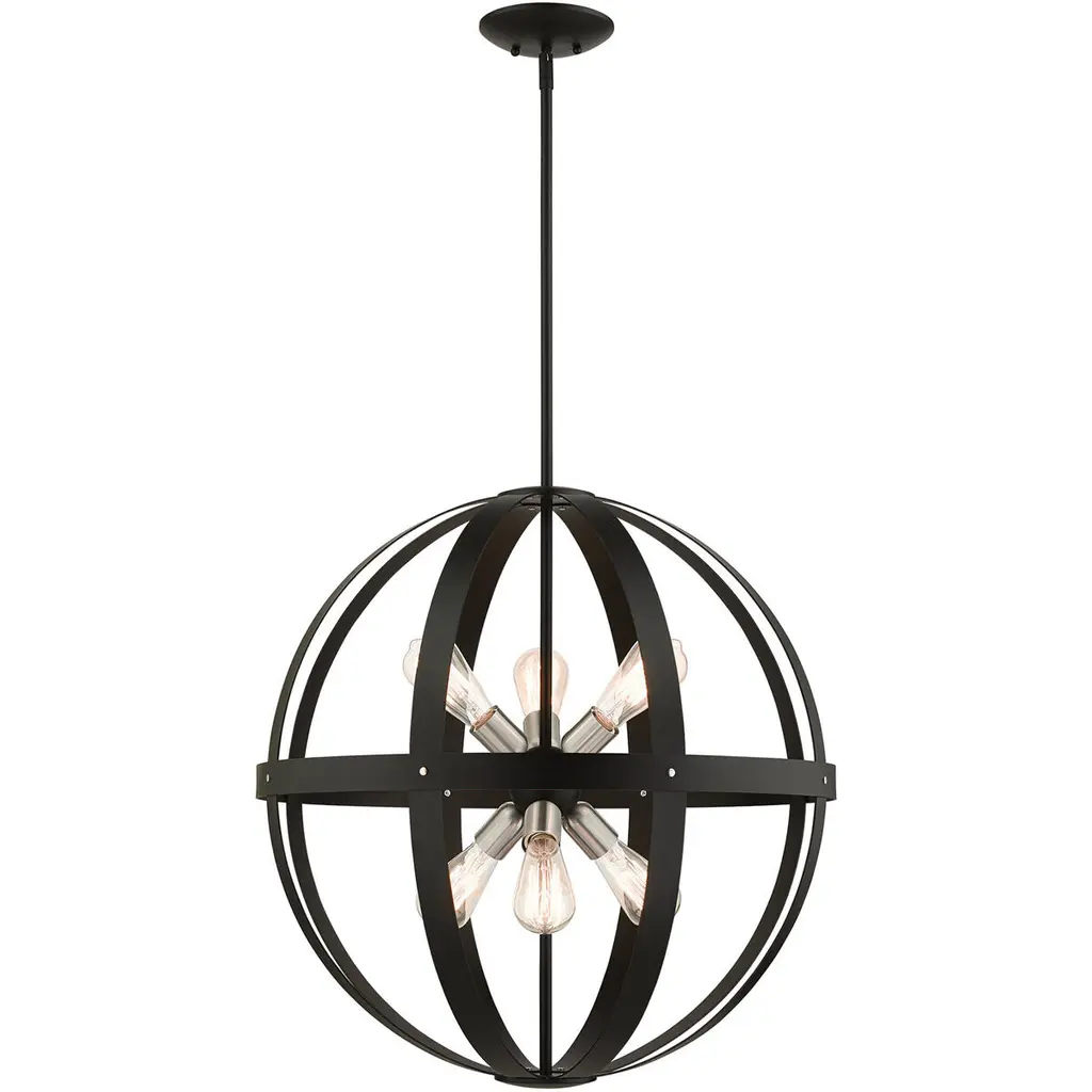 A globe of mid-century wonder. There’s no containing the lively light and attractive sputnik visuals of the Tristan Globe Pendant/Chandelier from Alder & Ore. The piece puts a distinctly modern spin on 50s styling. It gets the eyes traveling through the curved contours of its hand-arranged steel bands. Fitted with stylish rivets, the bands combine to create an open yet boldly silhouetting globe. Peek through and you’ll find a classic sputnik arrangement of lamp holders. Bulbs face in every direction to create a starburst of rich ambient light.
