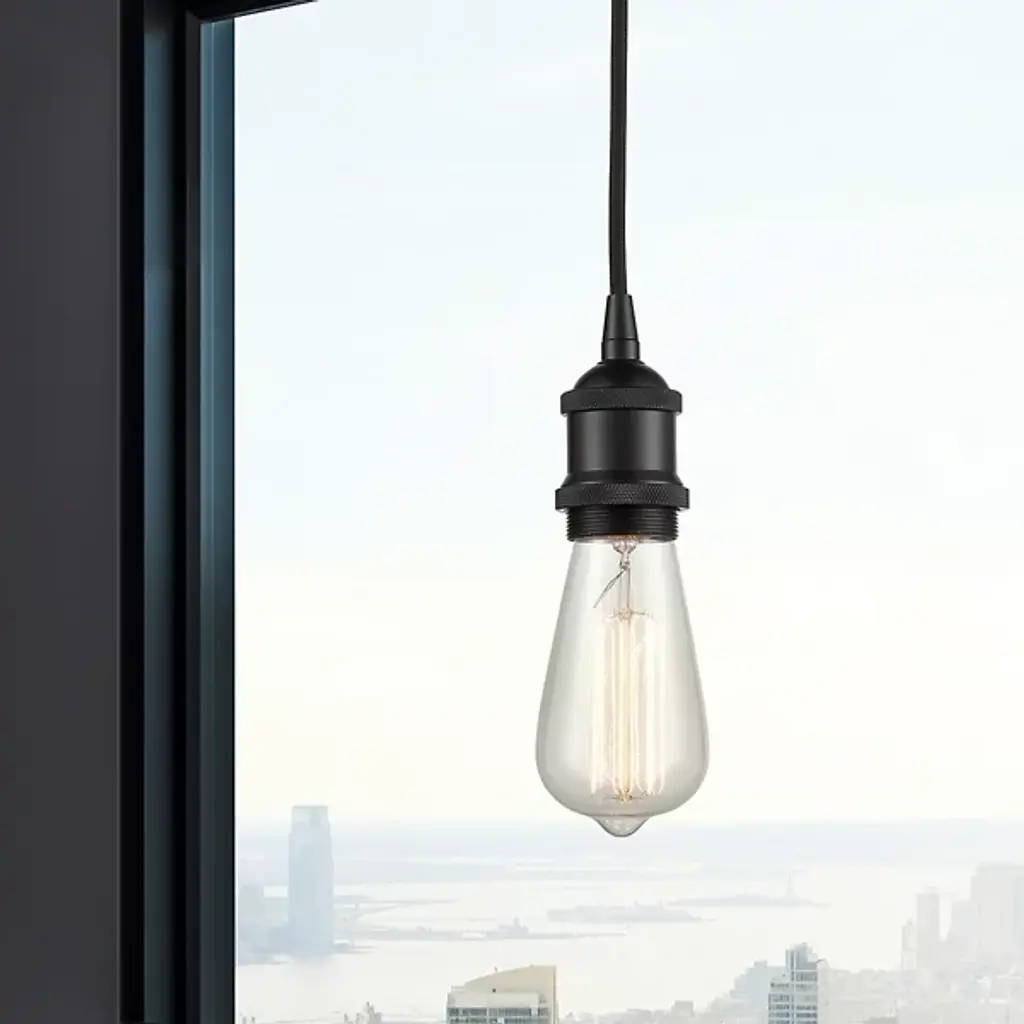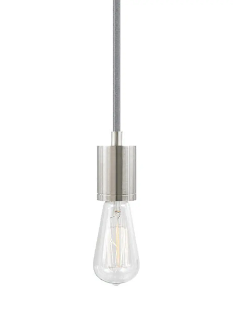 Big style in a small package. The Tristen Mini Pendant from Alder & Ore is simplicity itself. Suspended by a slender cable from a slender cable, the pendant’s sleek single-socket extends damp-listed lamping below, unrestricted by a diffuser or shade. The housing is accentuated by knurled rings for a retro, urban look, open lamping blazing a path out around the fixture.