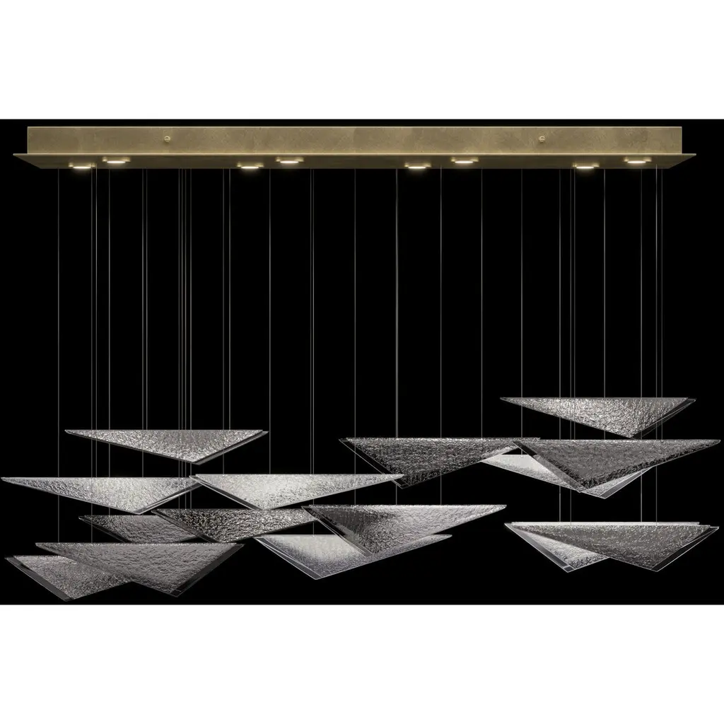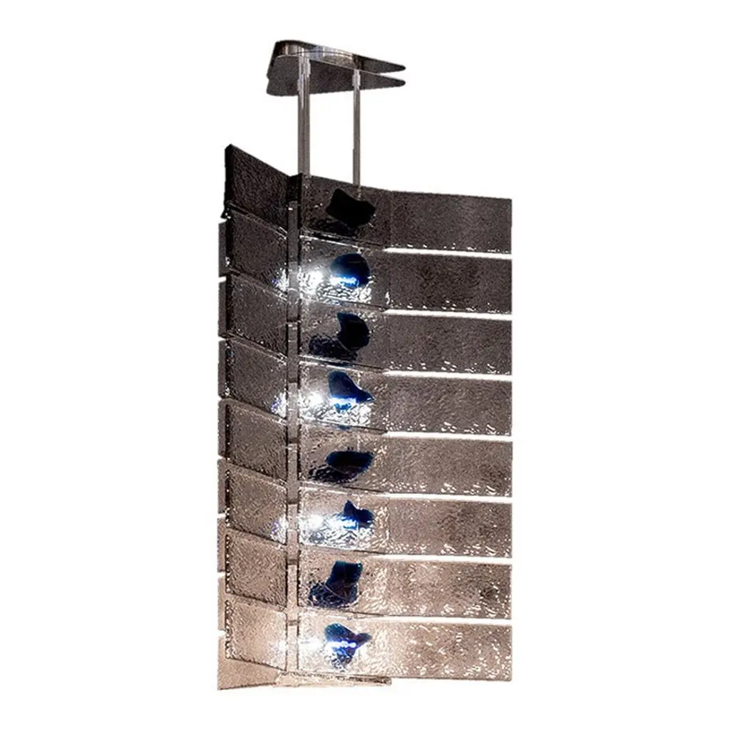 Trizebao is a lighting element developed vertically composed of glass strips in crystal color with colored decoration. Electrification in the central body.Modular elements skilfully handcrafted from sheer glass. A three-dimensional vertical light flows through its core. Trizebao is the utmost expression of the skill and creative genius of VENINI’s master glassblowers. Trizebao is exclusively available as a pendant light.Colors:CRYSTAL with ACQUAMARINE decorationLight source:4 x max 8W LED G9