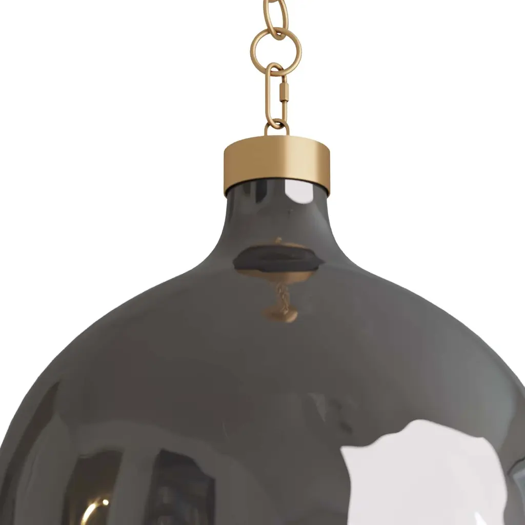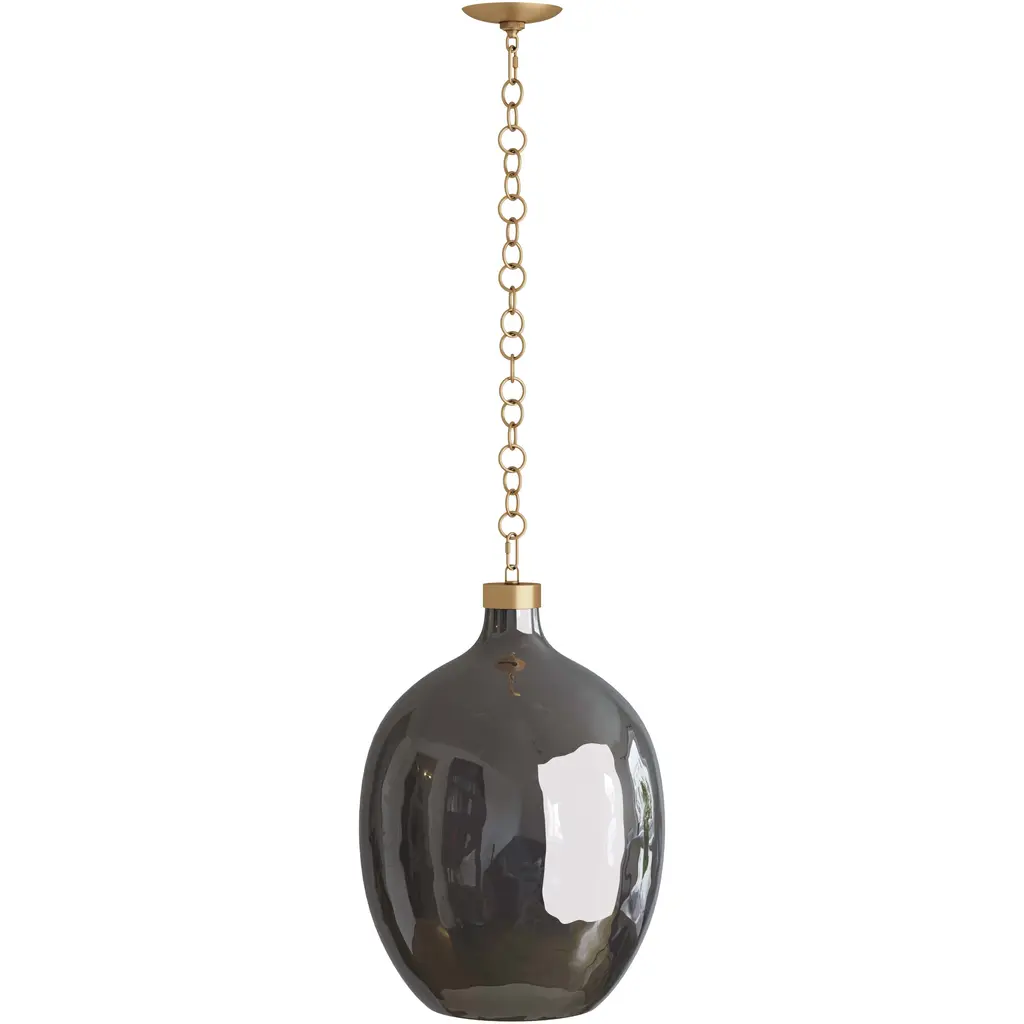 The sleek, sophisticated trost pendant transforms an interior like magic. The oversized, oval light is created in flint luster glass. Turn it on, and the color changes to a lighter shade, and the reflective finish becomes muted. The piece is finished with an adjustable, jewelry-style antique brass chain link. Finish will vary. Damp-rated, although limited covered outdoor conditions may affect finish.