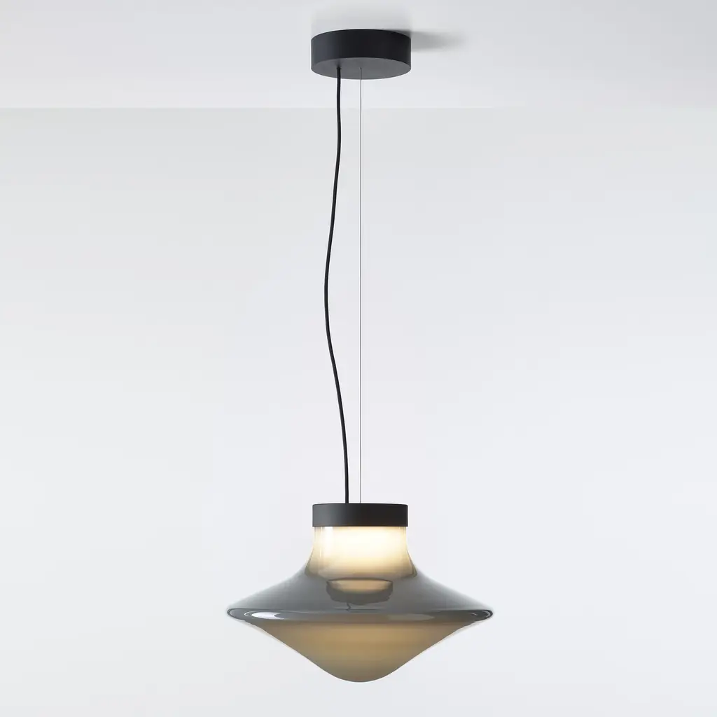 Dynamic yet delicately balanced, the Trottola LED Pendant Light from Brokis captures the playful spirit of a spinning top in a refined, sculptural form. Designed by Federico Peri, its name—Trottola, Italian for "whirligig"—hints at the lamp’s gentle motion and kinetic inspiration. The handblown glass shade, with its elegant curves and subtle gradient, floats beneath a minimal metal cap, diffusing a soft, ambient light. Suspended alone or in clusters, Trottola adds movement, warmth, and poetic charm to any contemporary setting. It’s lighting that feels as alive as the space around it. Highlights