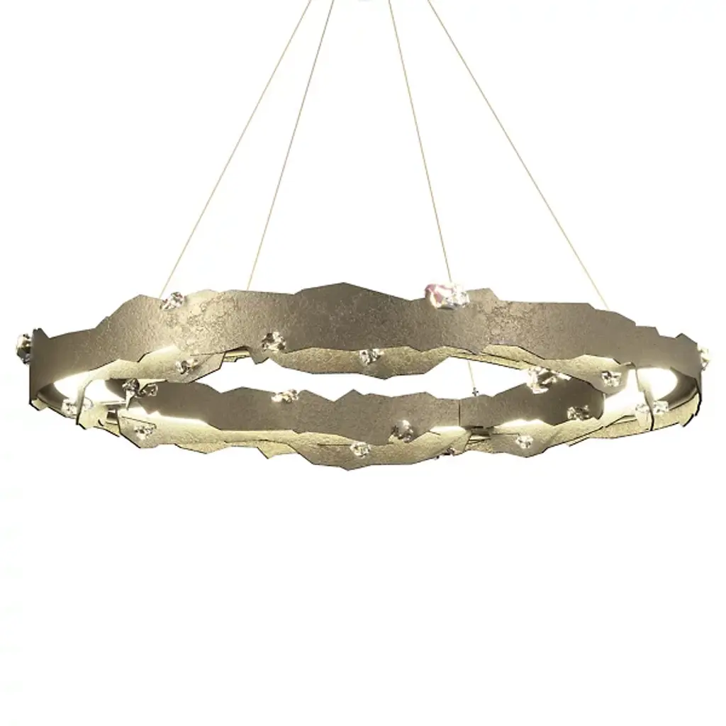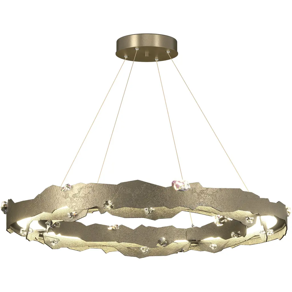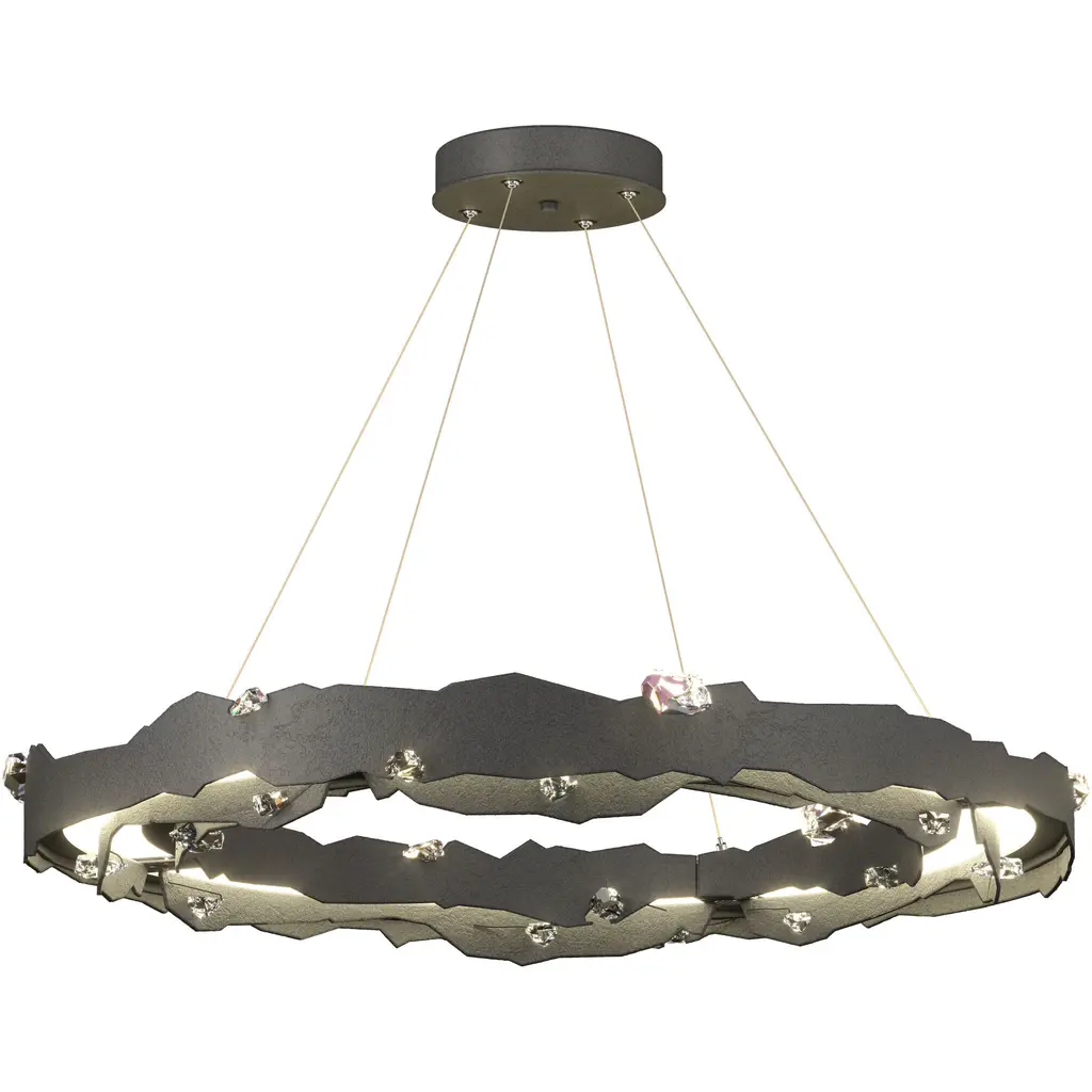 Experience the best of industrial design with the Trove LED Circular Pendant from Hubbardton Forge. Crafted with precision and passion, this pendant lighting fixture features a striking ring shape made from durable steel and accented with glass elements. The state-of-the-art integrated LED technology ensures efficient illumination that enhances the ambiance of any room. Its versatile design is perfect for various spaces, such as dining rooms, living rooms, or entryways. Hand-crafted in Vermont, USA, each piece displays the unique touch of skilled artisans.