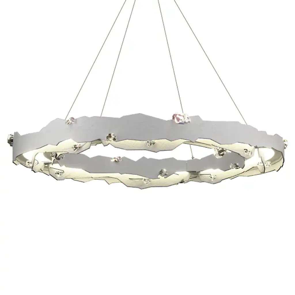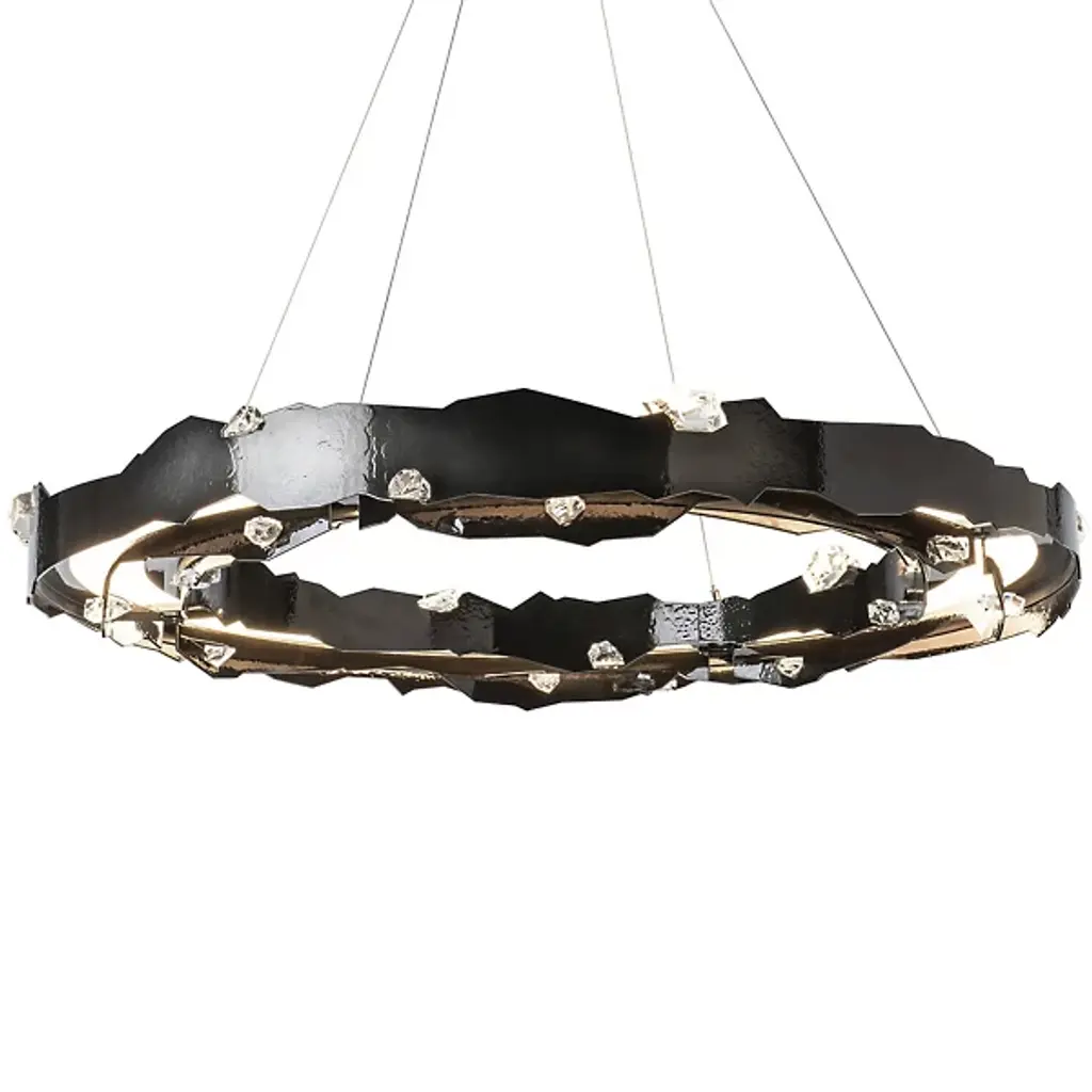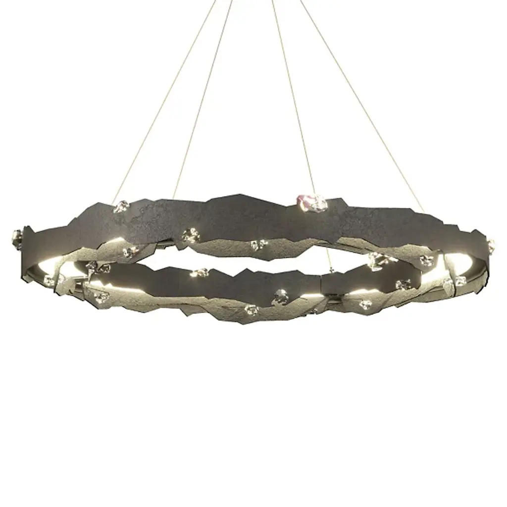 Experience the best of industrial design with the Trove LED Circular Pendant from Hubbardton Forge. Crafted with precision and passion, this pendant lighting fixture features a striking ring shape made from durable steel and accented with glass elements. The state-of-the-art integrated LED technology ensures efficient illumination that enhances the ambiance of any room. Its versatile design is perfect for various spaces, such as dining rooms, living rooms, or entryways. Hand-crafted in Vermont, USA, each piece displays the unique touch of skilled artisans.