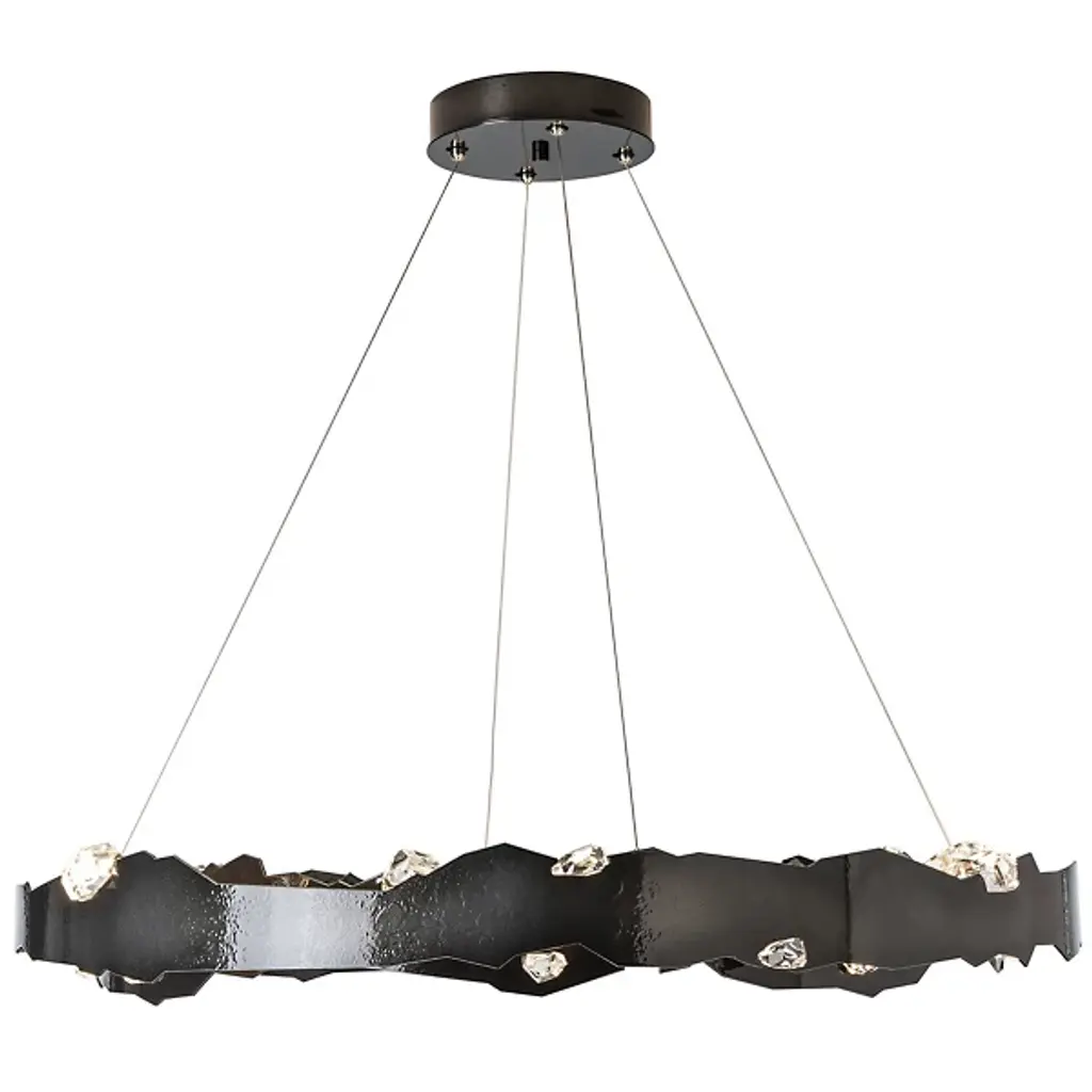 Experience the best of industrial design with the Trove LED Circular Pendant from Hubbardton Forge. Crafted with precision and passion, this pendant lighting fixture features a striking ring shape made from durable steel and accented with glass elements. The state-of-the-art integrated LED technology ensures efficient illumination that enhances the ambiance of any room. Its versatile design is perfect for various spaces, such as dining rooms, living rooms, or entryways. Hand-crafted in Vermont, USA, each piece displays the unique touch of skilled artisans.